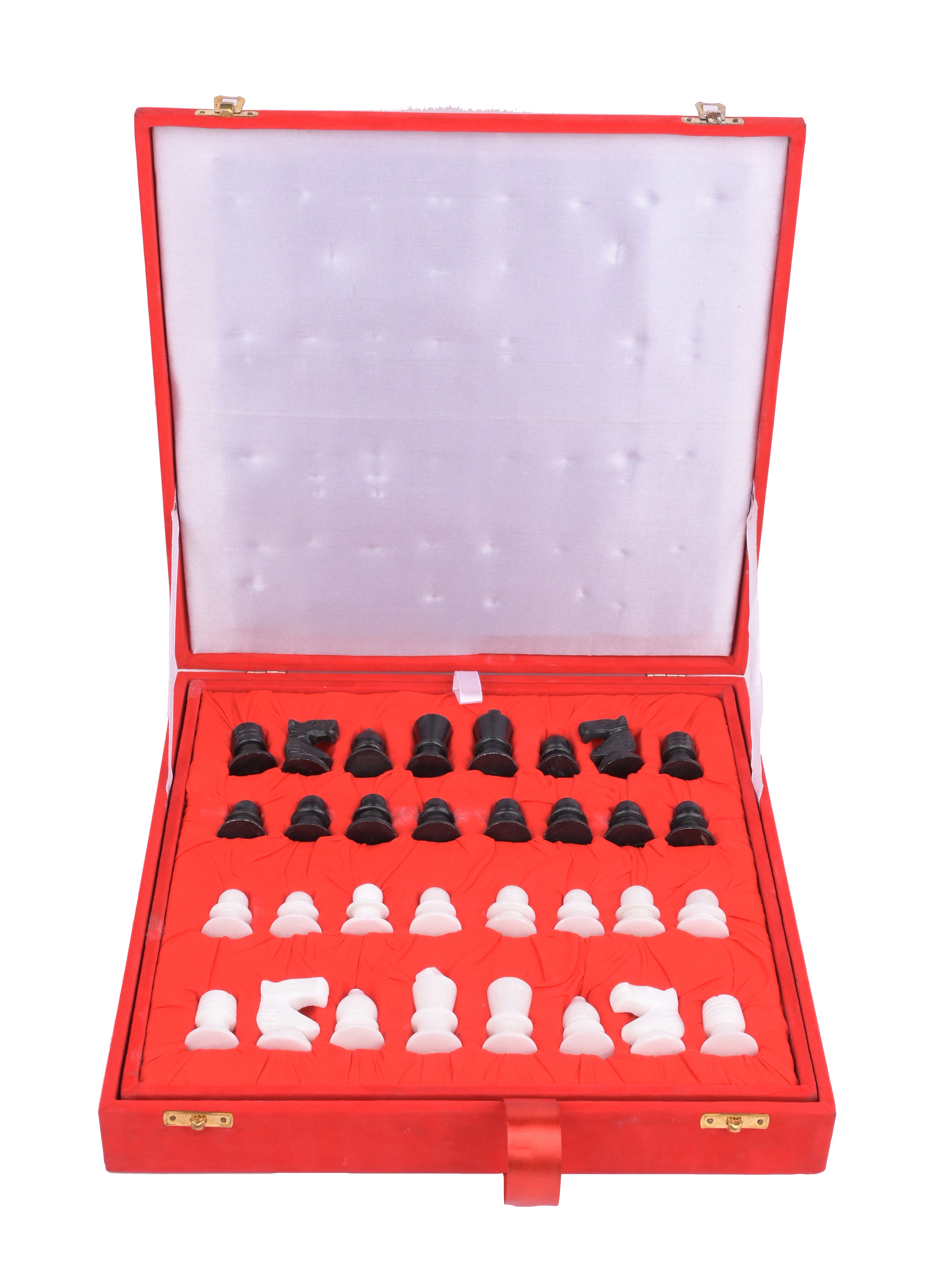 This elegant hand crafted chess set will be treasured forever, either you gift yourself or gift others. It comes in a red velvet gift box, bottom layer has the chess board and the top layer has the playing pieces. Since it is made of solid marble, the entire set is quite heavy, weighs almost 5 kgs.