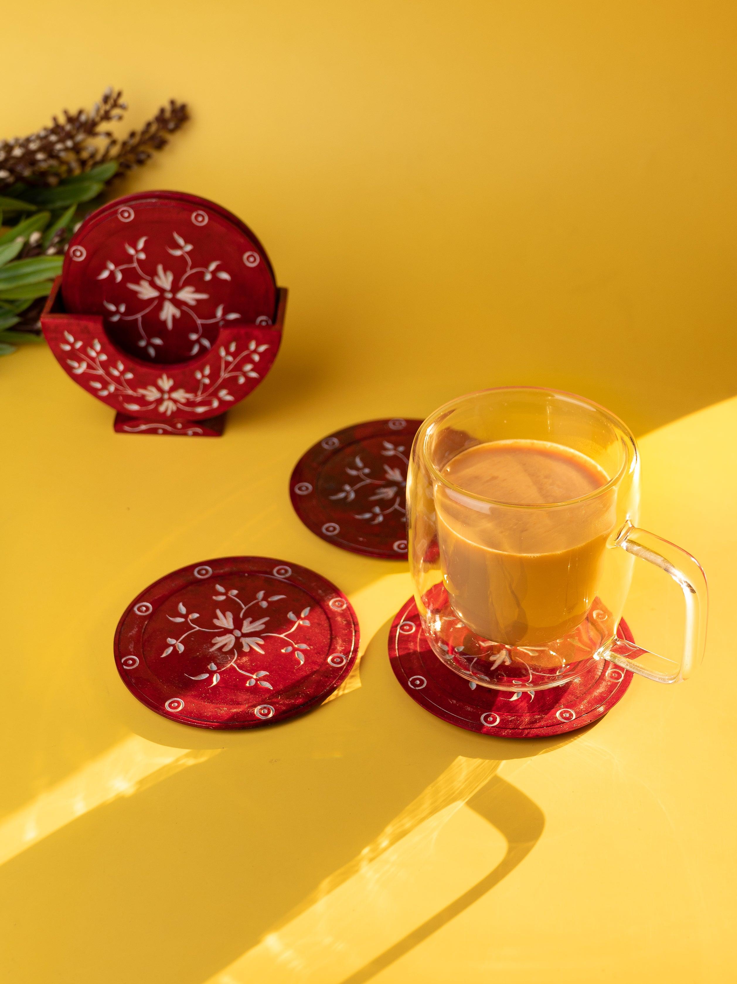 These red coasters are a beautiful solution to protect the tables and counters from any drips or condensation. Hand crafted and polished, these coasters are elegant and colorful addition to any table decor. They are easy to use and clean and can be used on a regular basis or on special occasions while hosting guests.