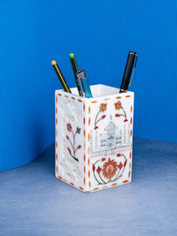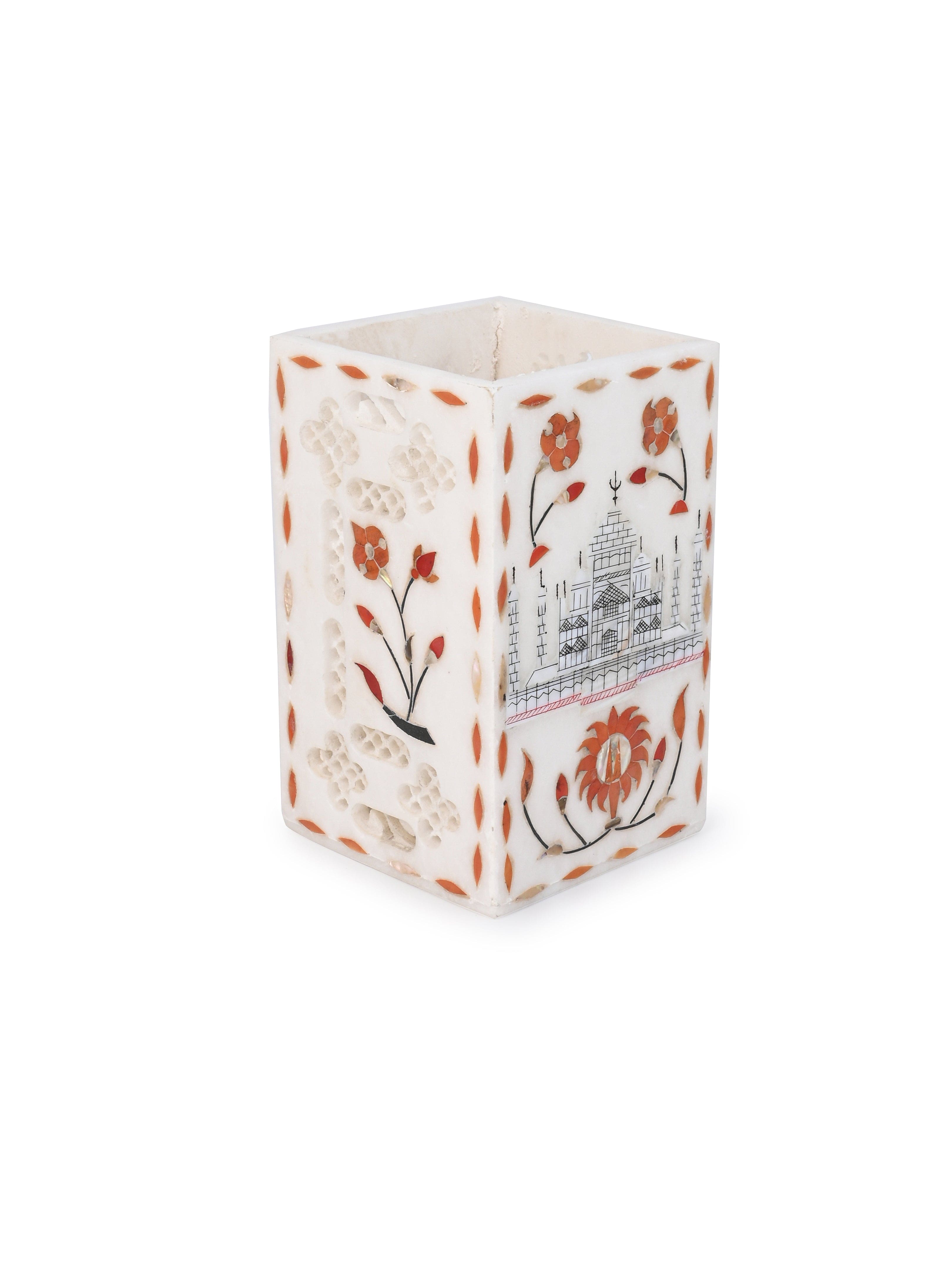 A stylish & modern multi purpose holder which can be used to store your pen, pencils & stationery, even toothbrush or cutlery. Handcrafted from the best quality marble, it has got both carving as well as inlay work on the body. An enviable piece for your home/office and a great gifting option too.