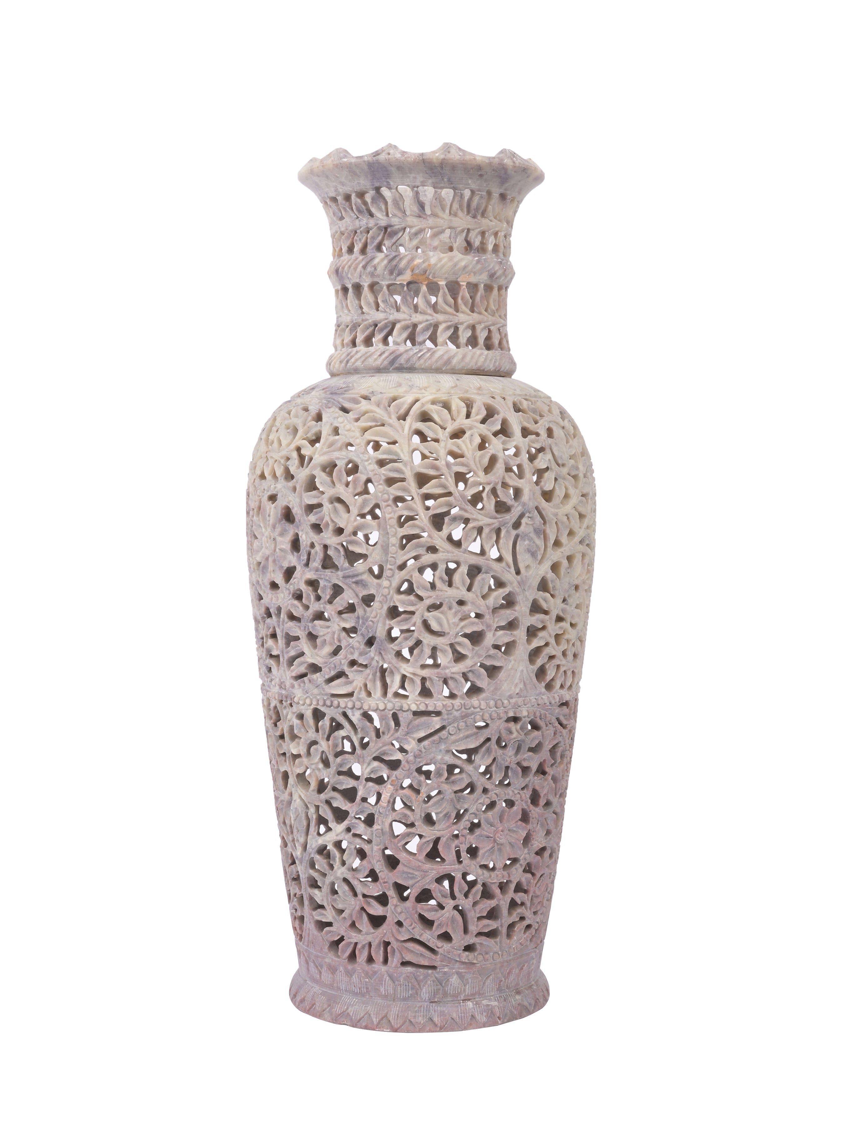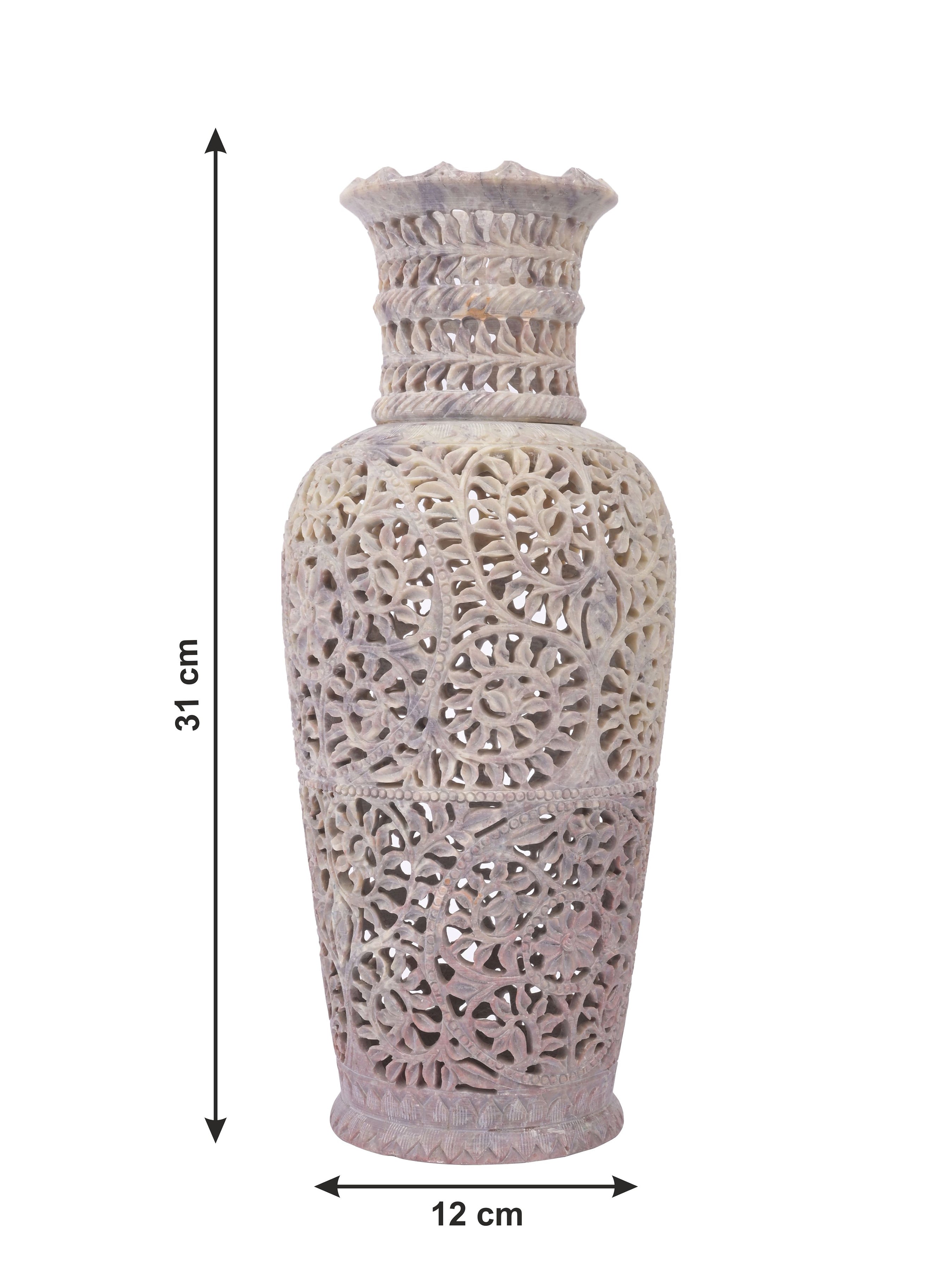 This pristine stone crafted vase is gorgeous on its own to display or works equally well with natural or artificial blooms. These hand-finished stoneware vases sit beautifully on counter-tops, side tables or display cabinet.