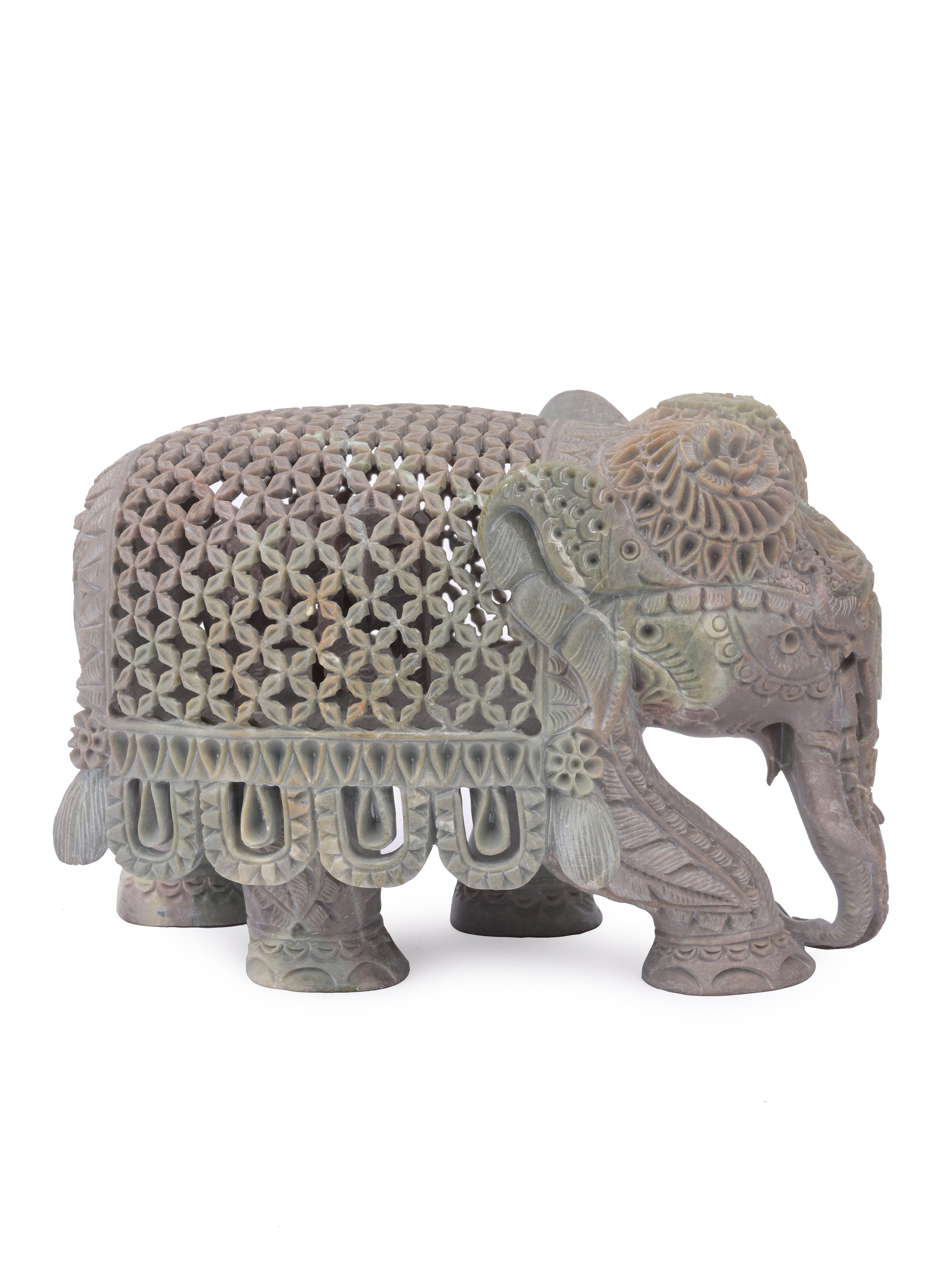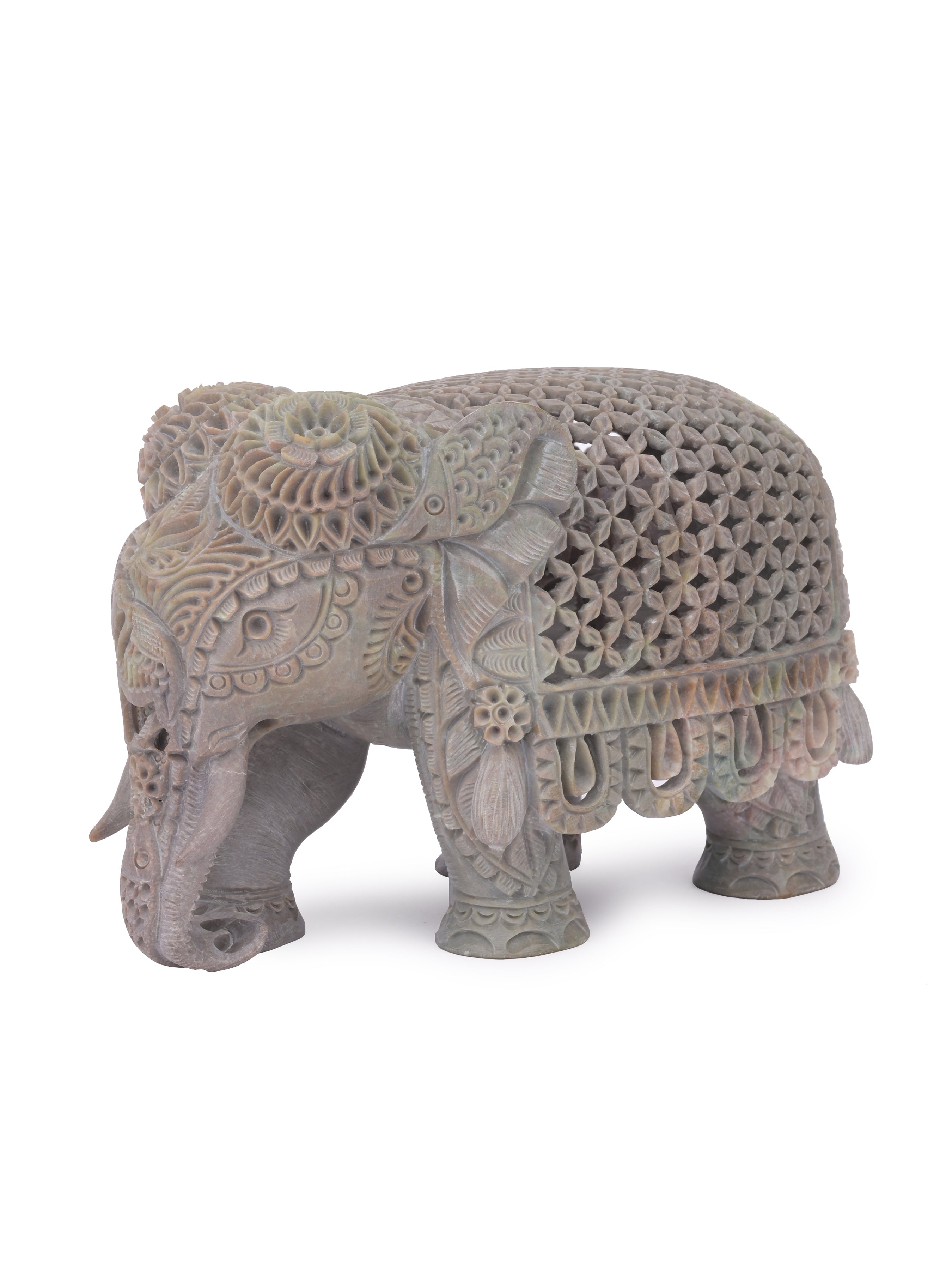 Jaali or open work craft on soap stone has been used to create this masterpiece. The symbol of Elephant reminds us to reach out and care for the World around us, developing more compassion. The Totem can be used as a home decor Item, or a personal altar piece.