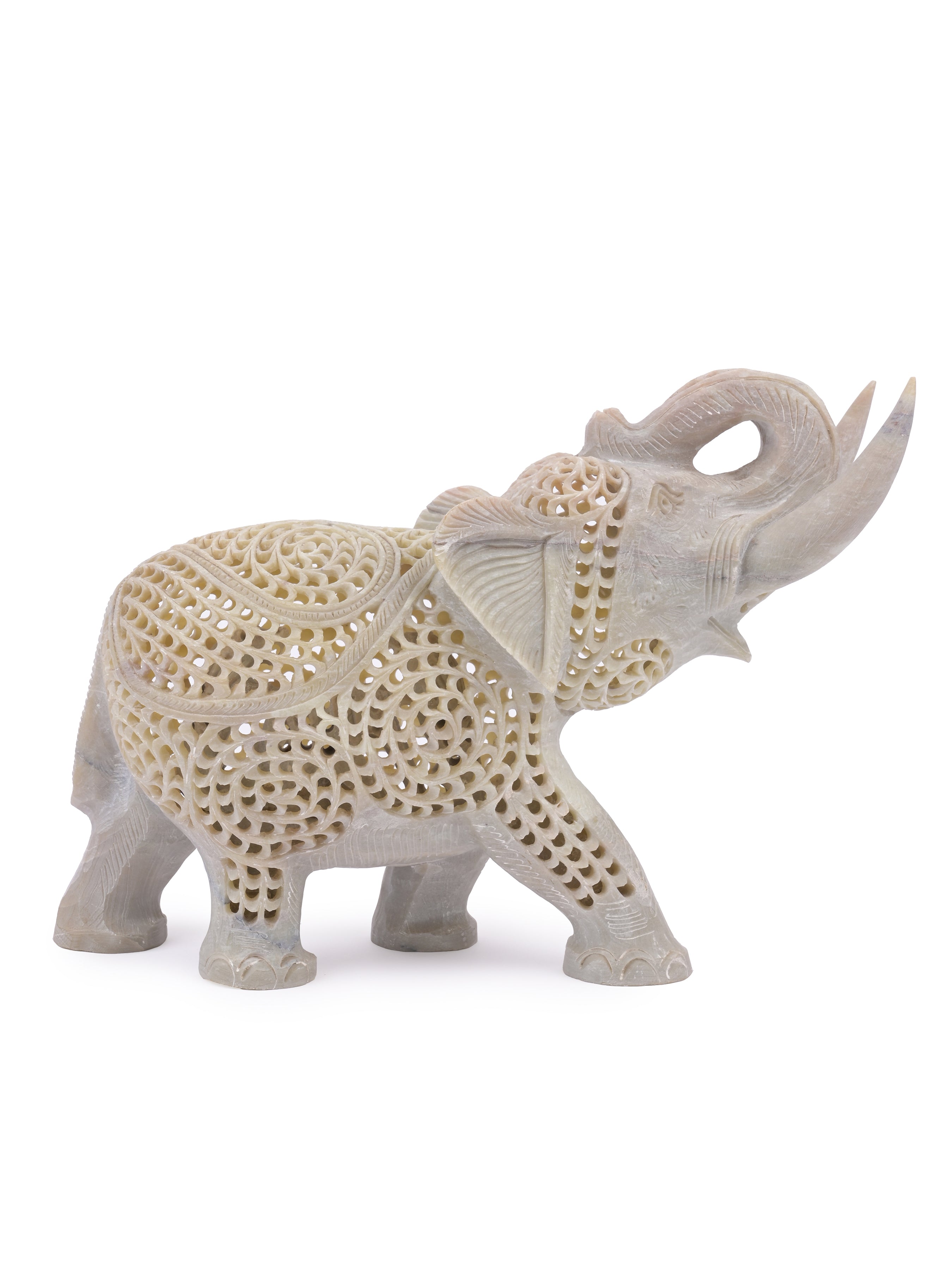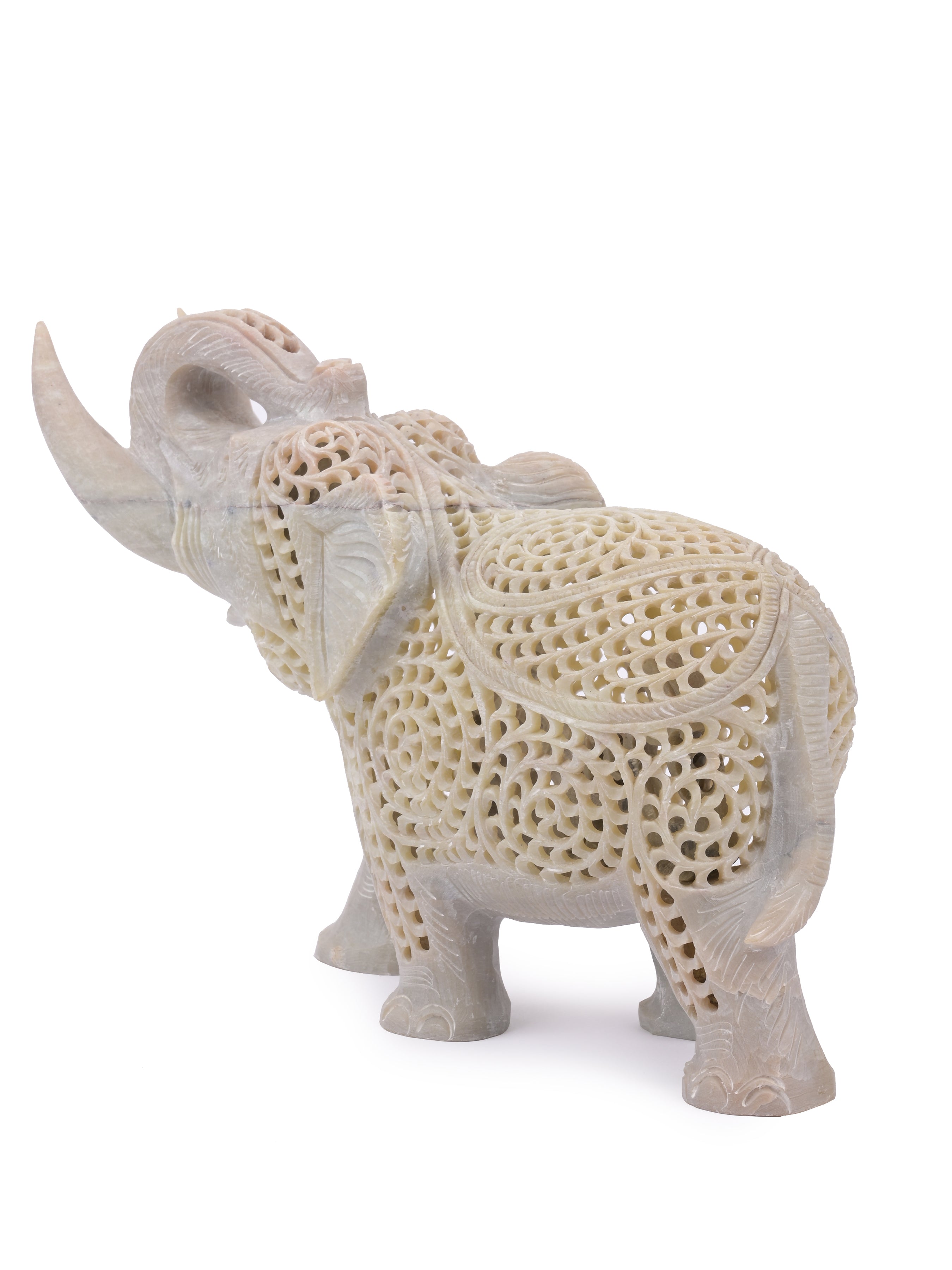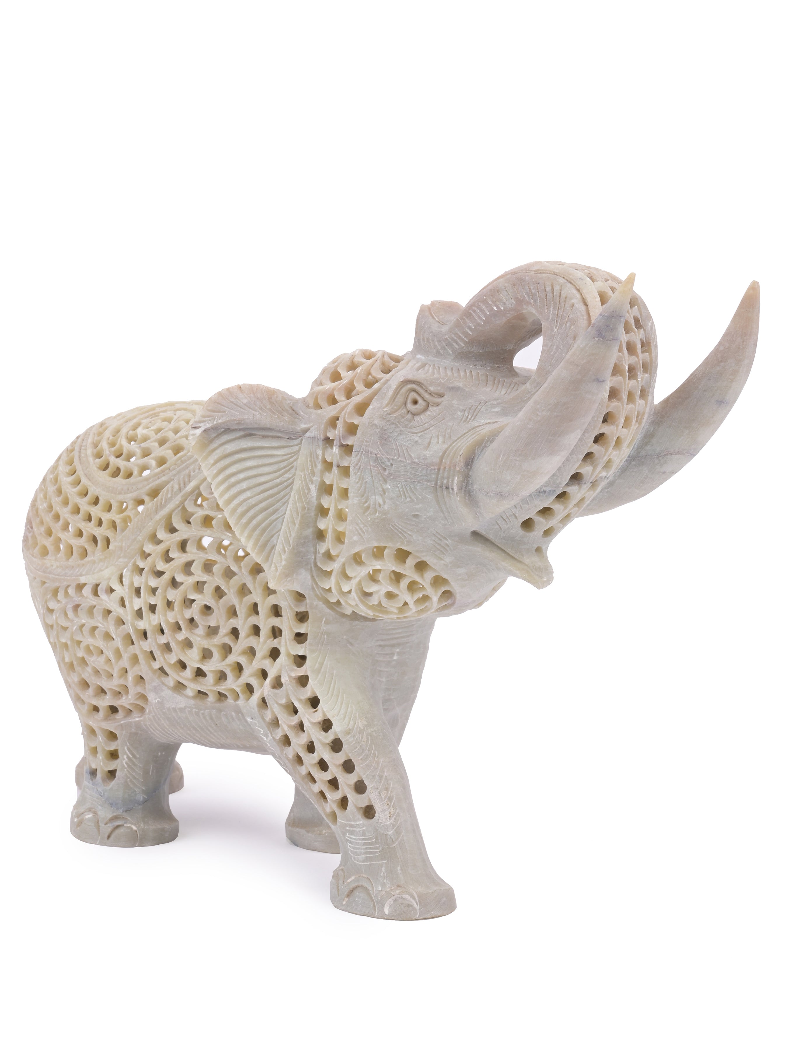 This father elephant has lifted his trunk in fury, thrusting powerful tusks towards the sky. Keep this showpiece in your office or living room as a good luck charm.