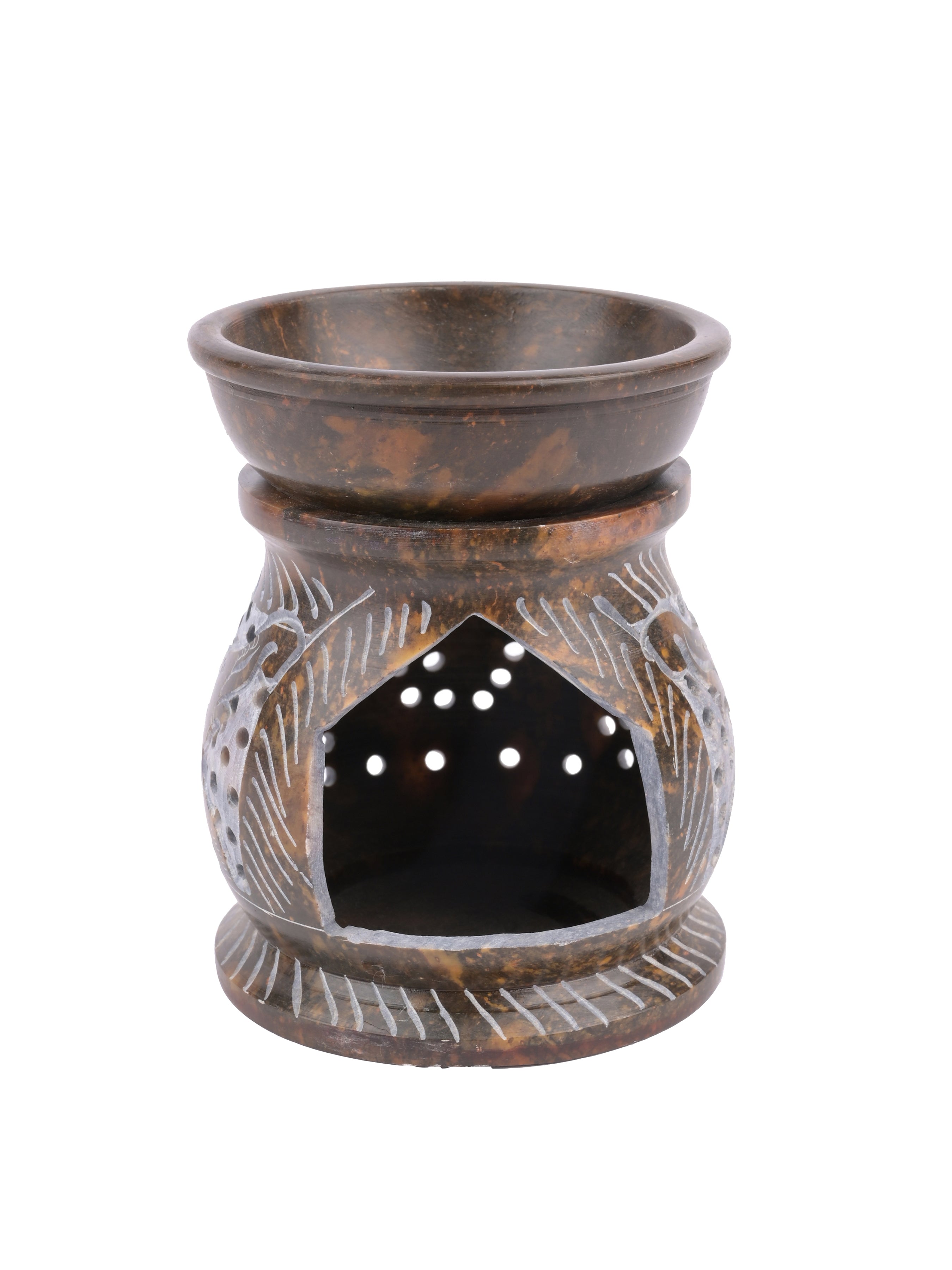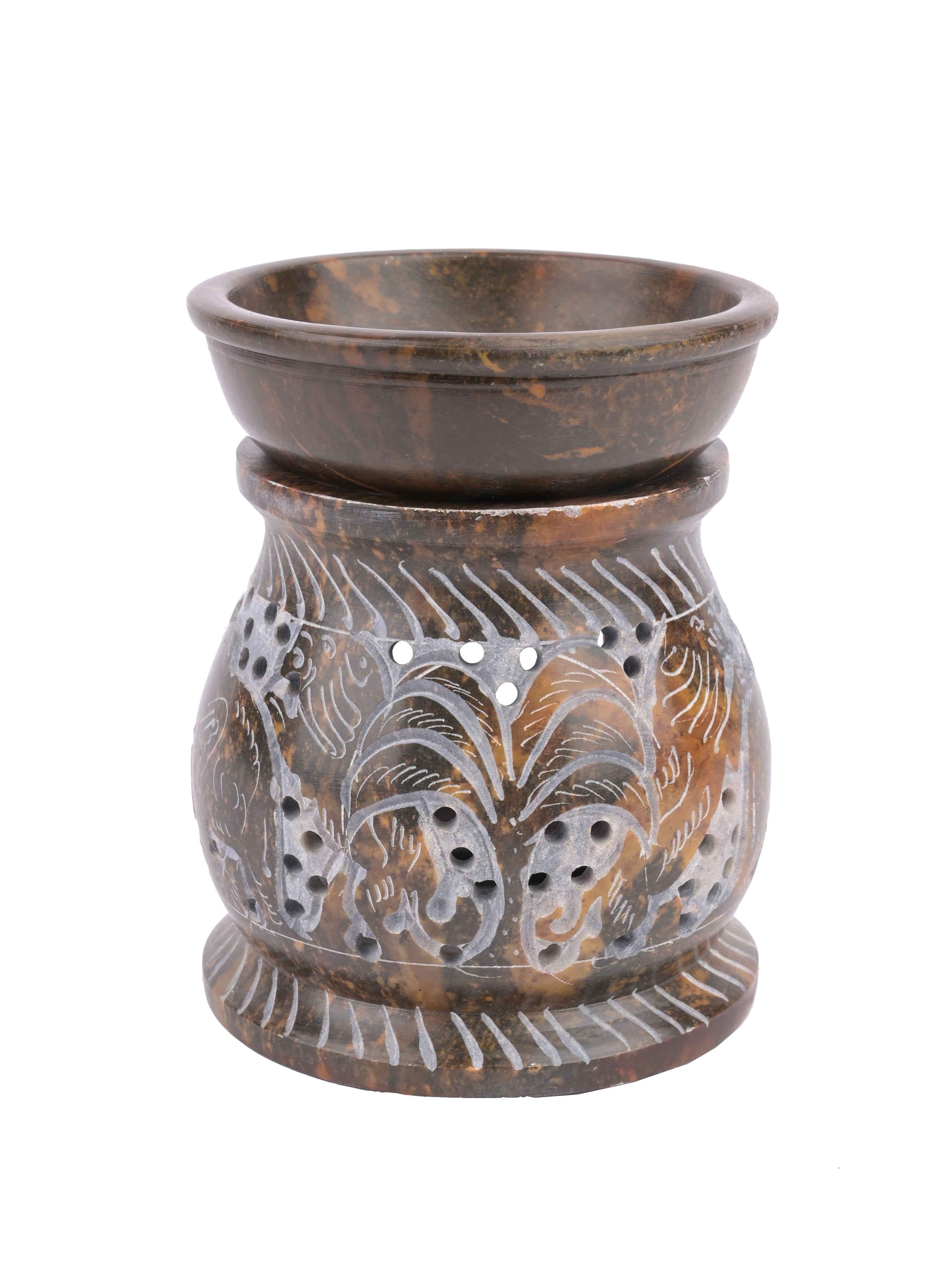 The oil burner has two pieces, one lower pot for placing the tealight candle and a bowl for water and Essential Oil. The tea light warms up the essential oils in stone saucer to diffuse aroma and fragrance. Essential oils smell great, reduce stress, treat fungal infections, and help you sleep well.