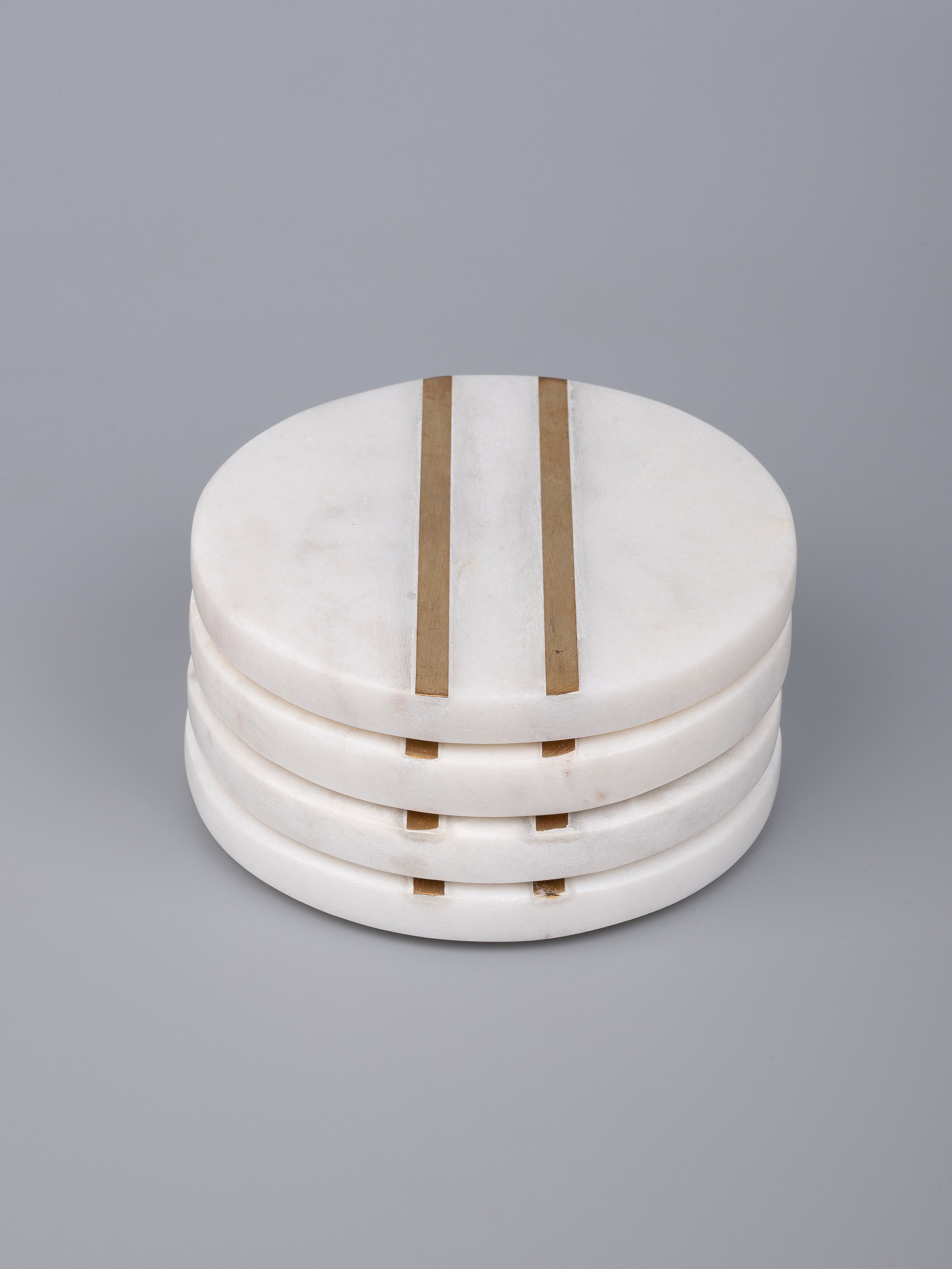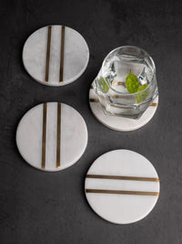 Featuring our exclusive round marble coasters made with white marble with details of brass inlay, beautifully handcrafted by skilled artisans. Use them in your living room, coffee table or on your bar counter. These natural coasters are sure to be the highlight of your living space.