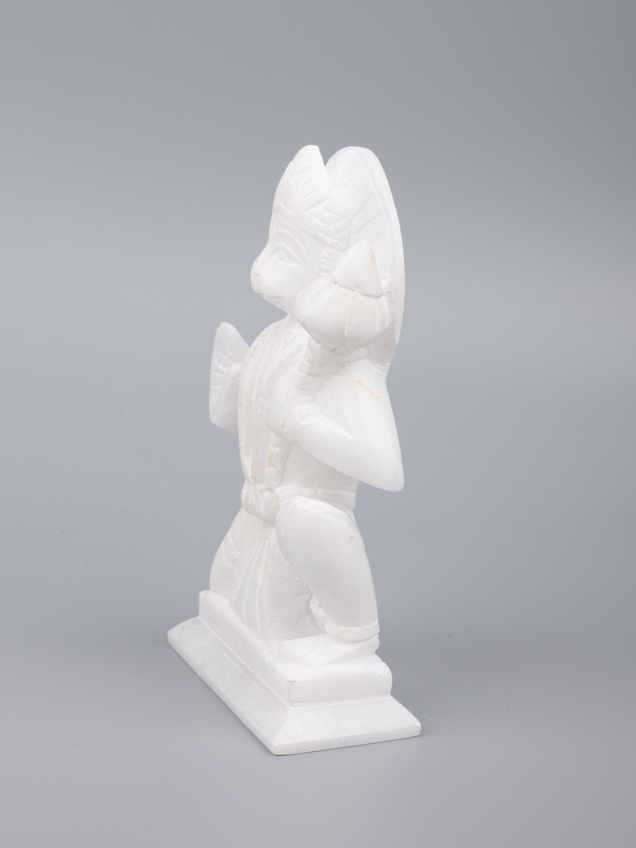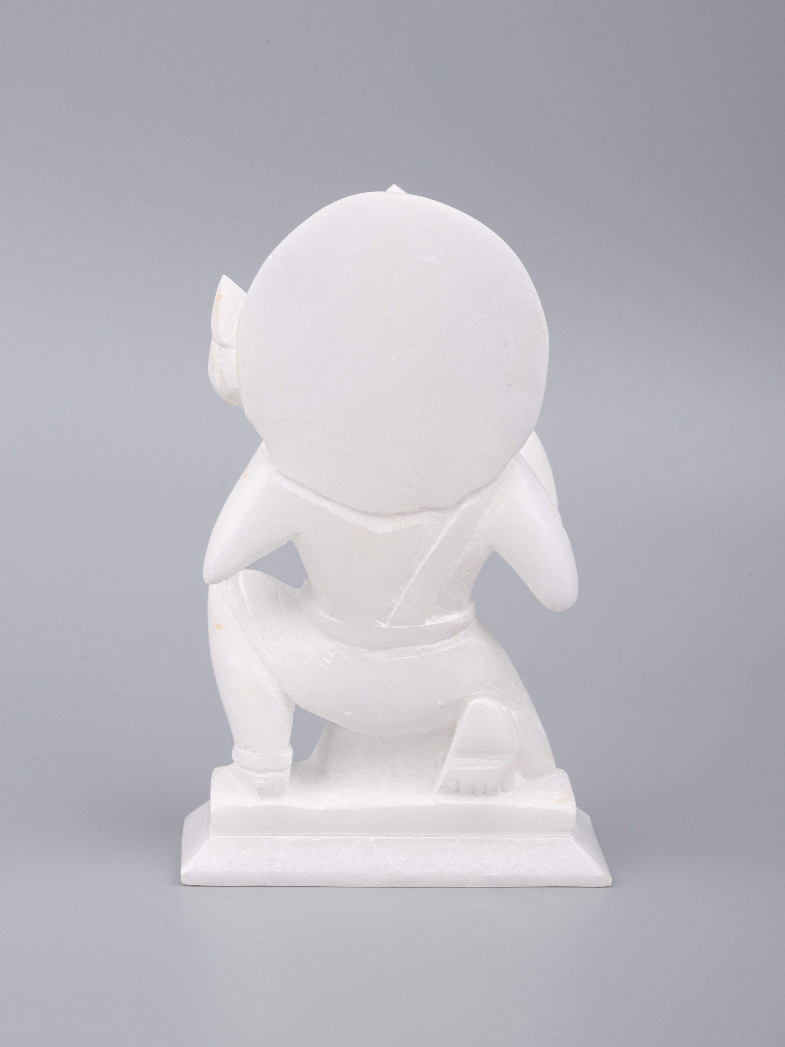 This is a small Hanuman Murti made of pure white natural marble, hand carving has been done in this statue from each and every side. The statue has been well designed for home temples and offices.
