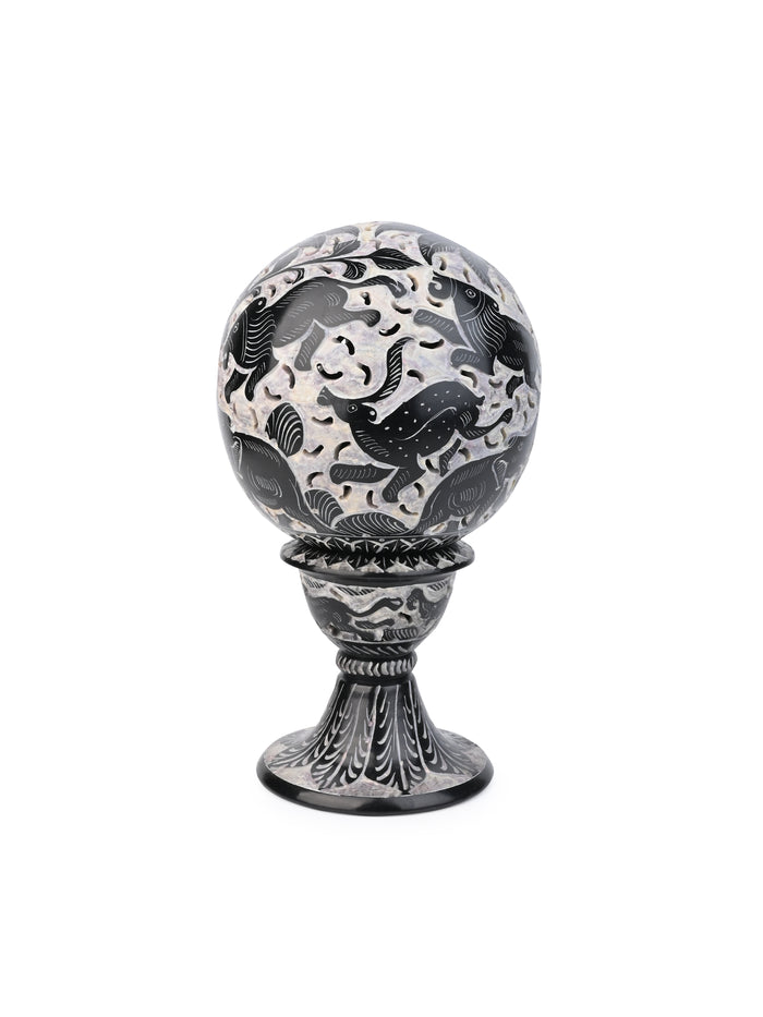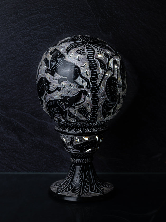 Black Stone Hand Crafted Round Ball Lamp Decor - 10 inches height