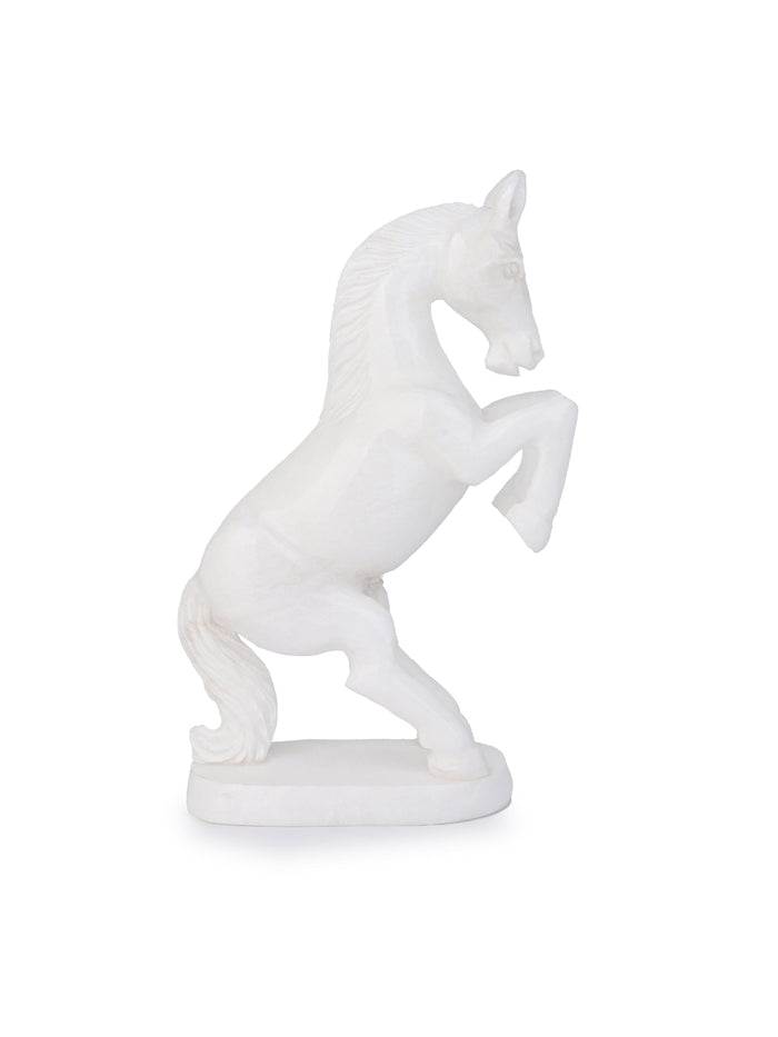 Marble Crafted Rearing Horse Sculpture for Home Office Decor - 10 inches