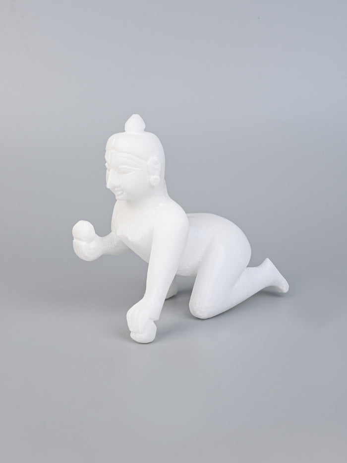 White Marble Stone Crafted Laddu Gopal - 5 inches