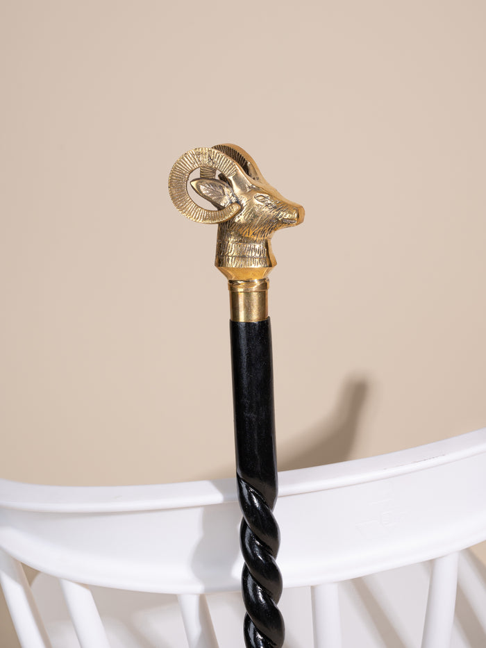 Shisham wood crafted brass deer head handle walking stick / cane - Easily detachable