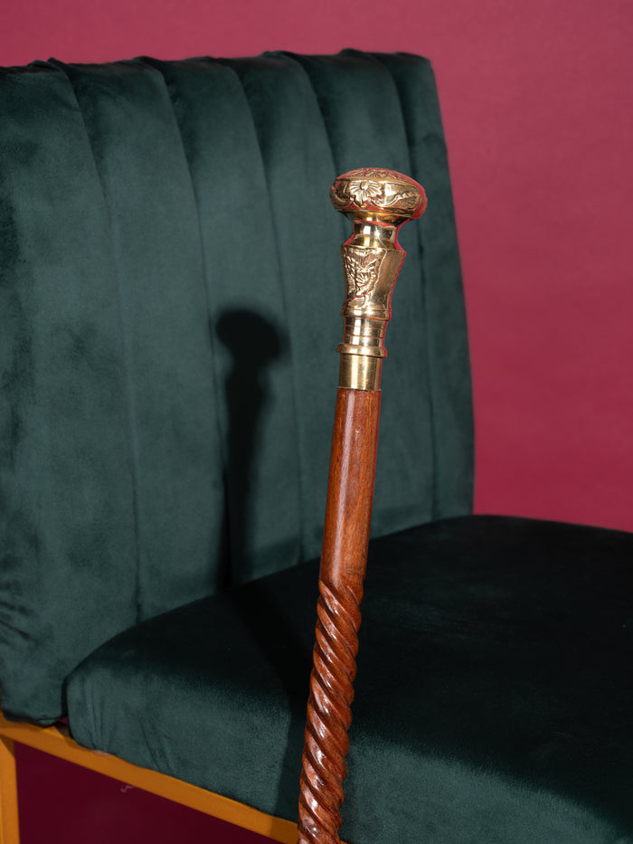 Shisham wood crafted brass handle royal walking stick / cane - Easily detachable