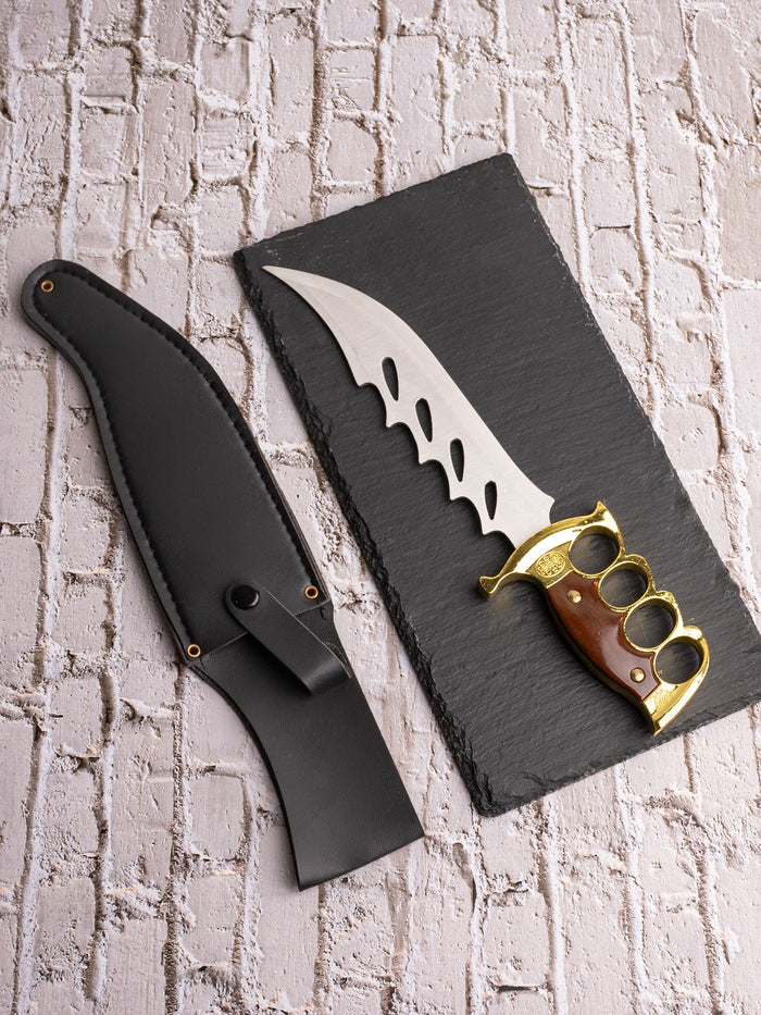 12" Knife / Dagger in a Brown Case with Golden Decoration
