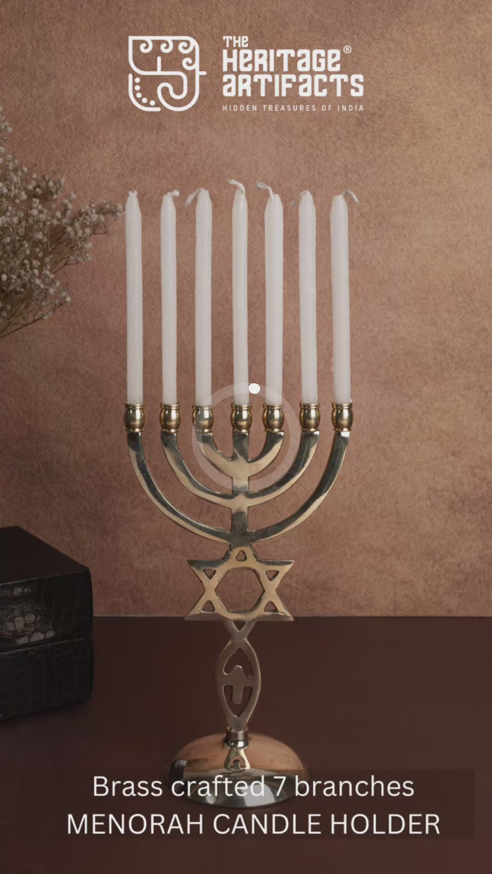 Brass crafted 7 branches Menorah candle holder - 8 inches