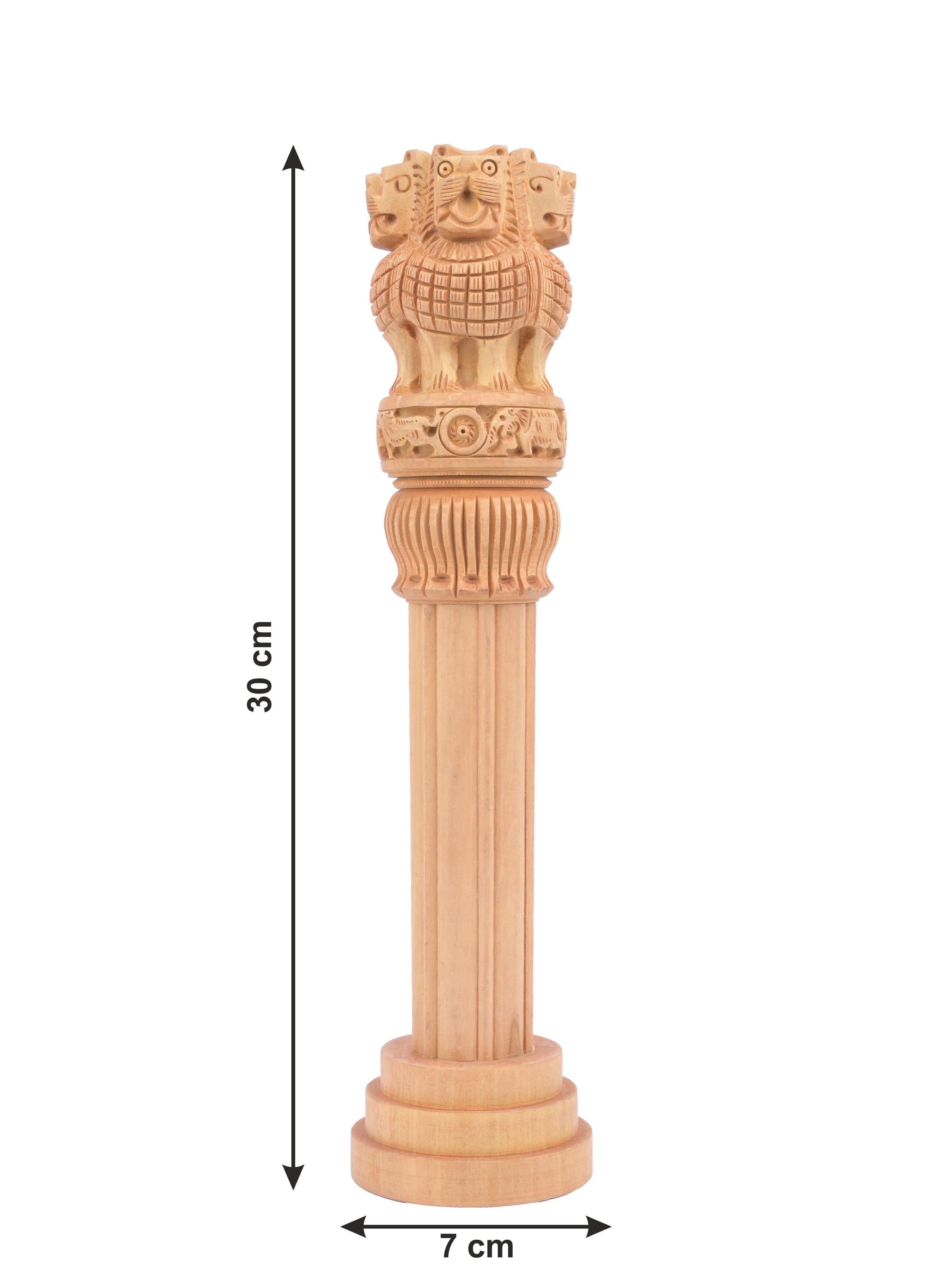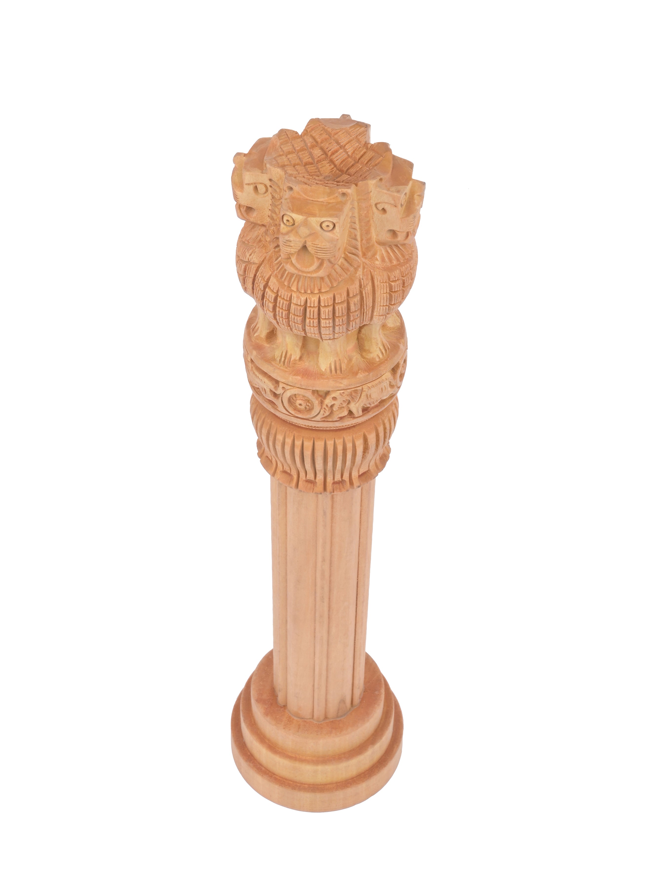 There are four lions standing back to back as well as the abacus features the statue of an elephant, a galloping horse, a bull and a lion, intervened by ashoka chakra over an inverted bell-shaped lotus flower. This handcrafted Ashoka pillar is made of Kadam wood and mainly used in office setups.