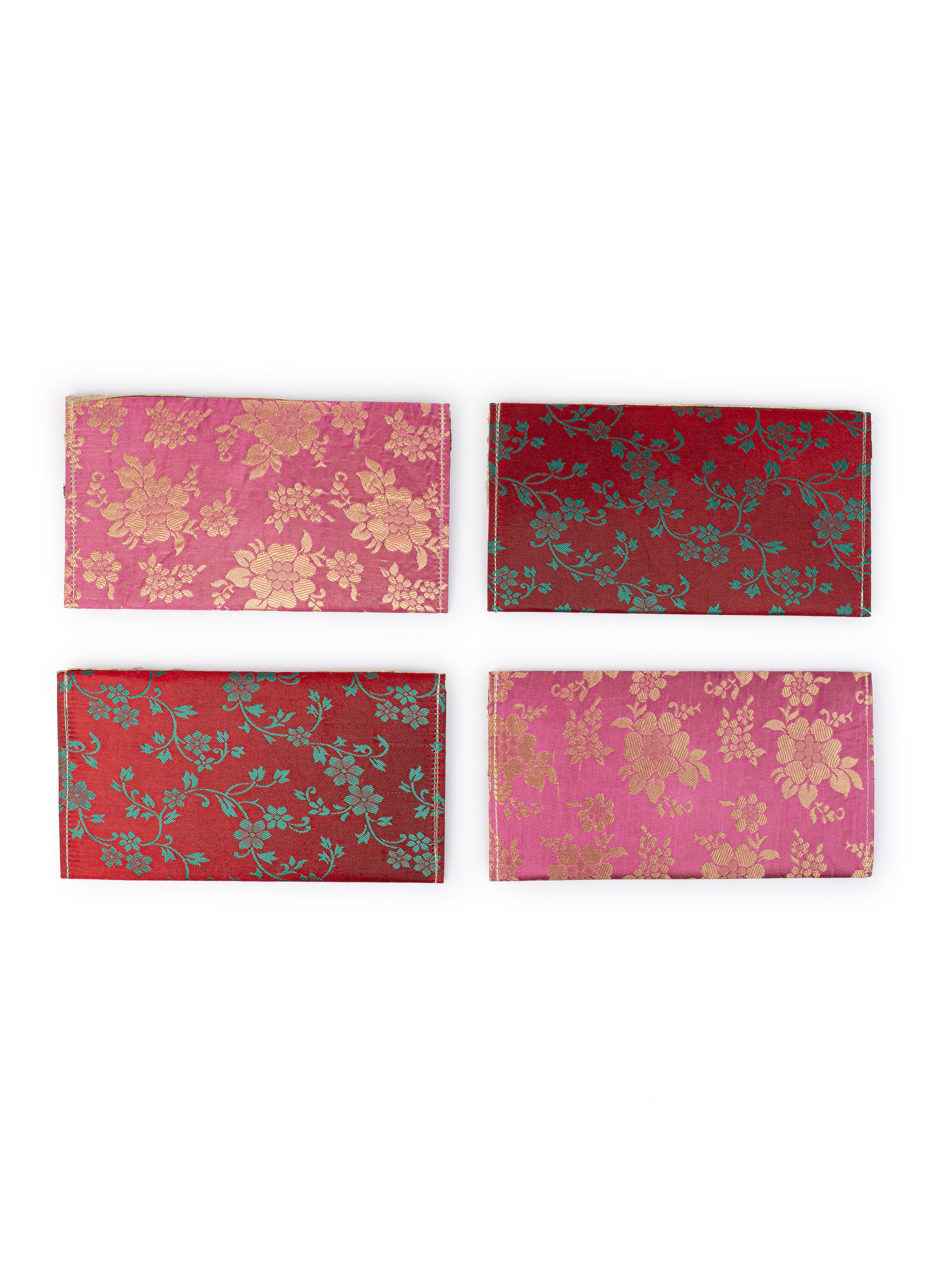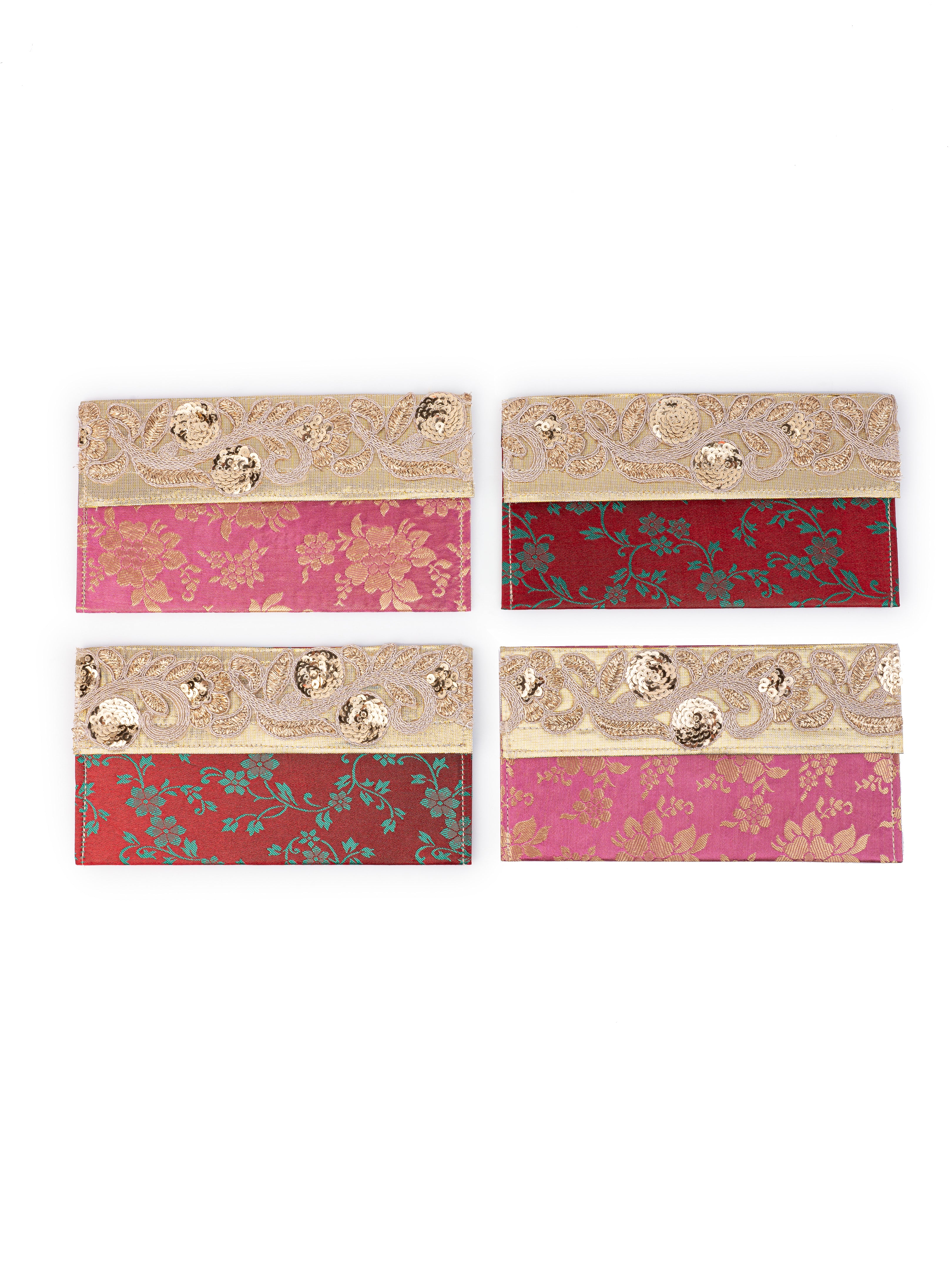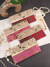 Handcrafted Set of 4 Color Banarasi Fabric Envelops - 8x4 inches