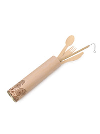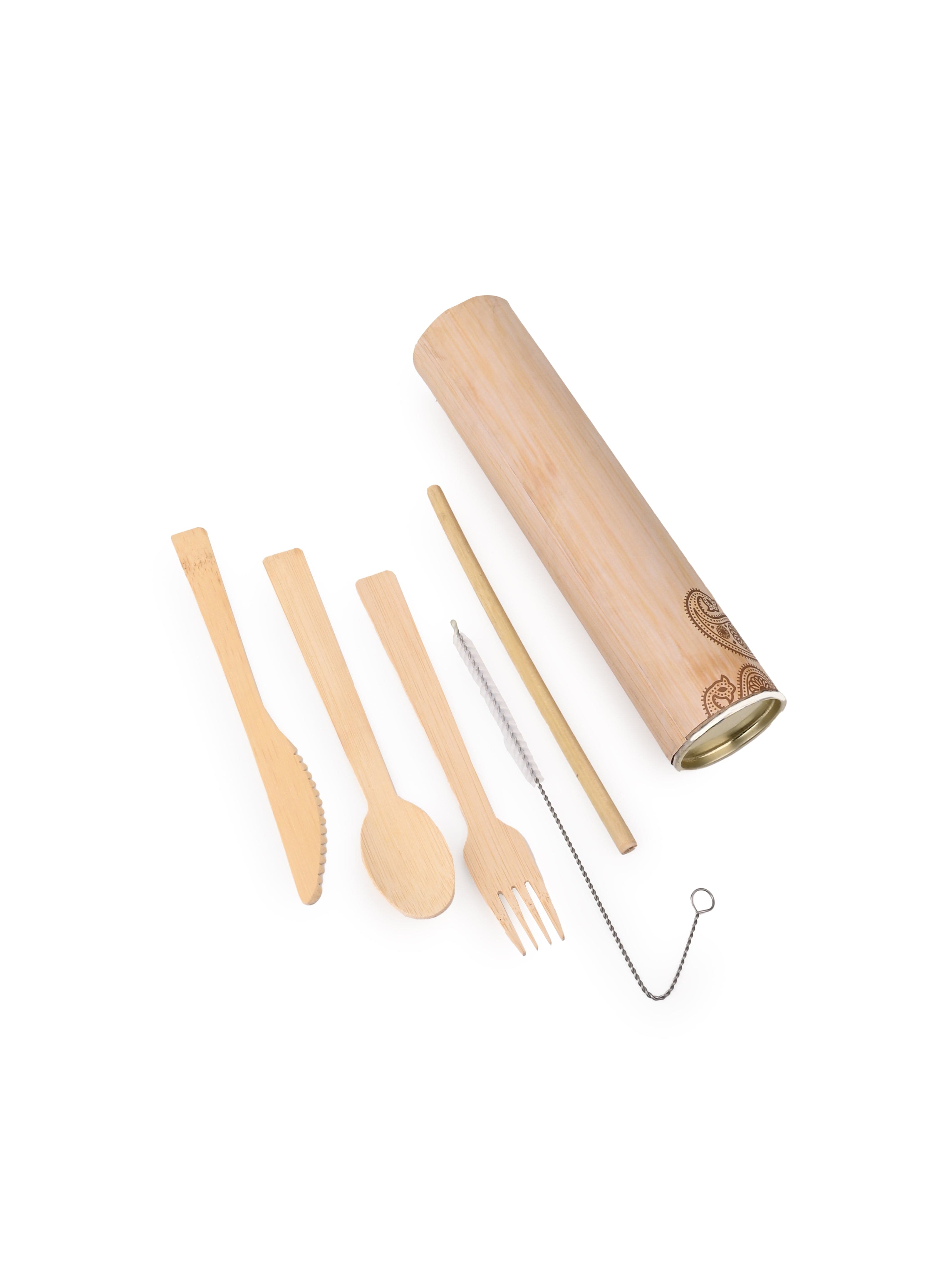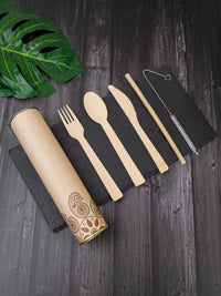 This is a unique travel kit with sustainably harvested bamboo cutlery inside a recycled paper case. Lightweight and travel friendly, it includes 1 spoon, 1 fork, 1 knife, 1 straw, and a thin cleaning brush. Perfect choice for school kids, working professionals, and people who love to travel.
