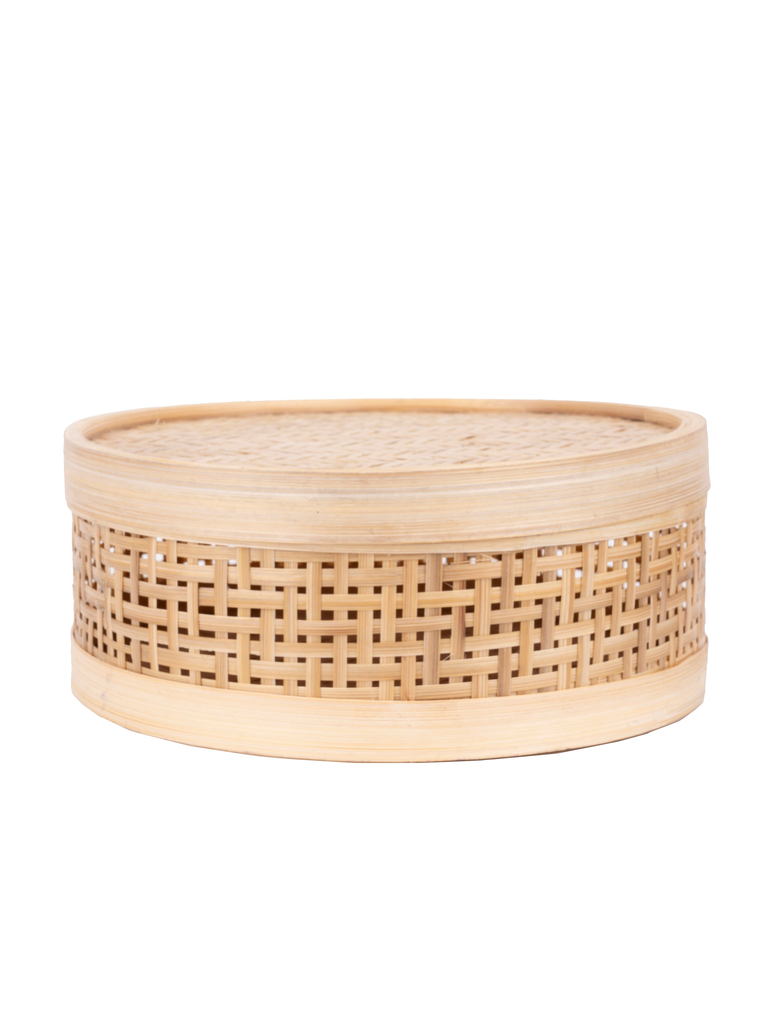 Organise your home with our bamboo weave designer storage box. Use this eco-friendly and light weight box in your bathroom, bedroom, kitchen or on your dining table, perfect to store your precious knick-knacks. It comes complete and protected with a lid.