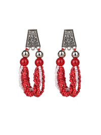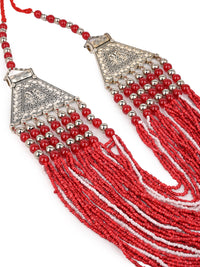 MAURYANA - Red color heavy beadwork necklace set with earrings - adjustable length