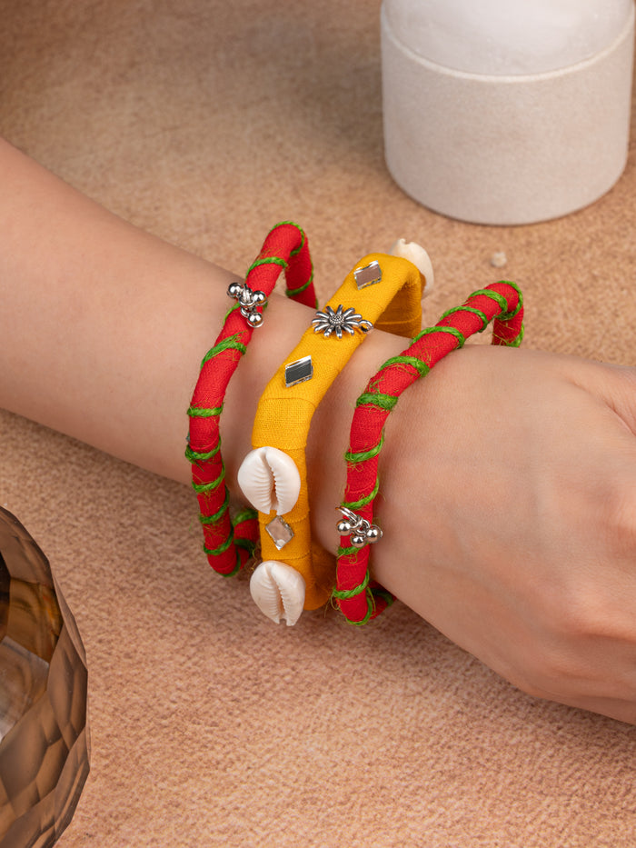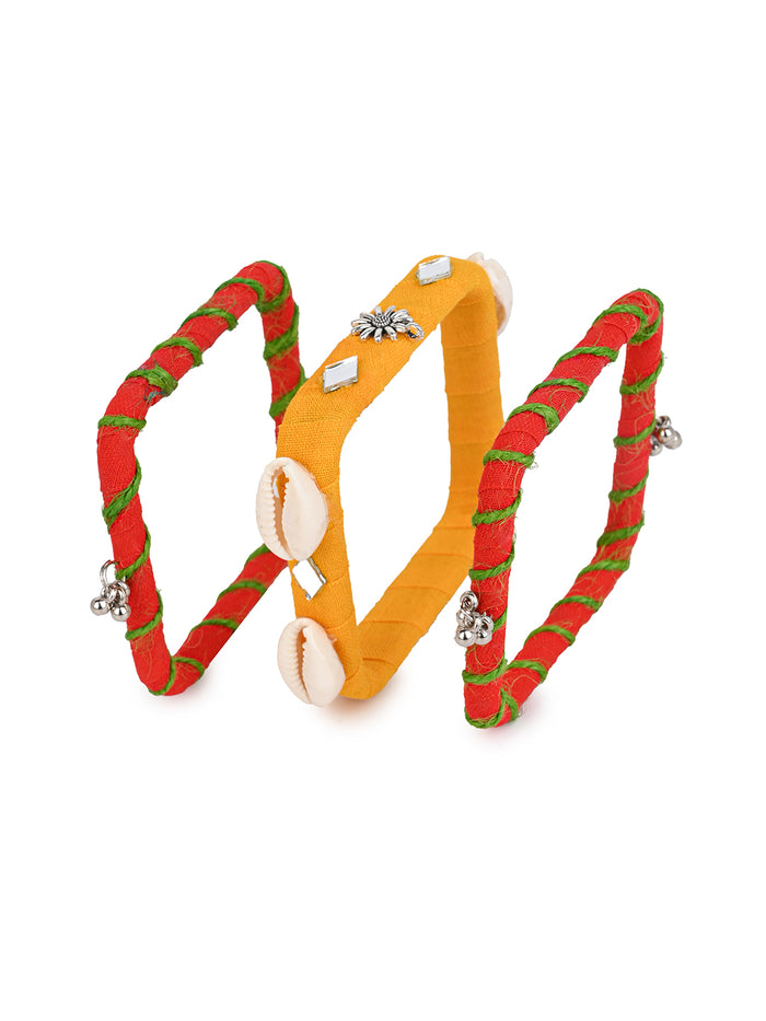 MAURYANA - Colorful fabric crafted square bangles set of 3 pcs - one size - assorted colors