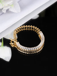 MAURYANA - Stainless Steel 18k Gold Plated Zircon Inlay Simple and Elegant Adjustable Bracelet
