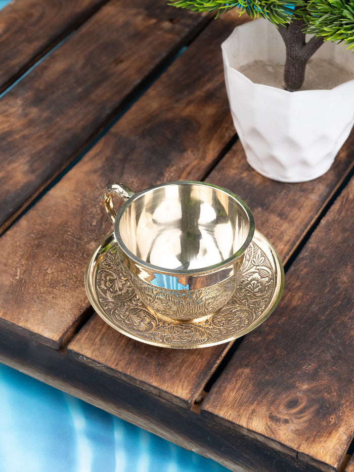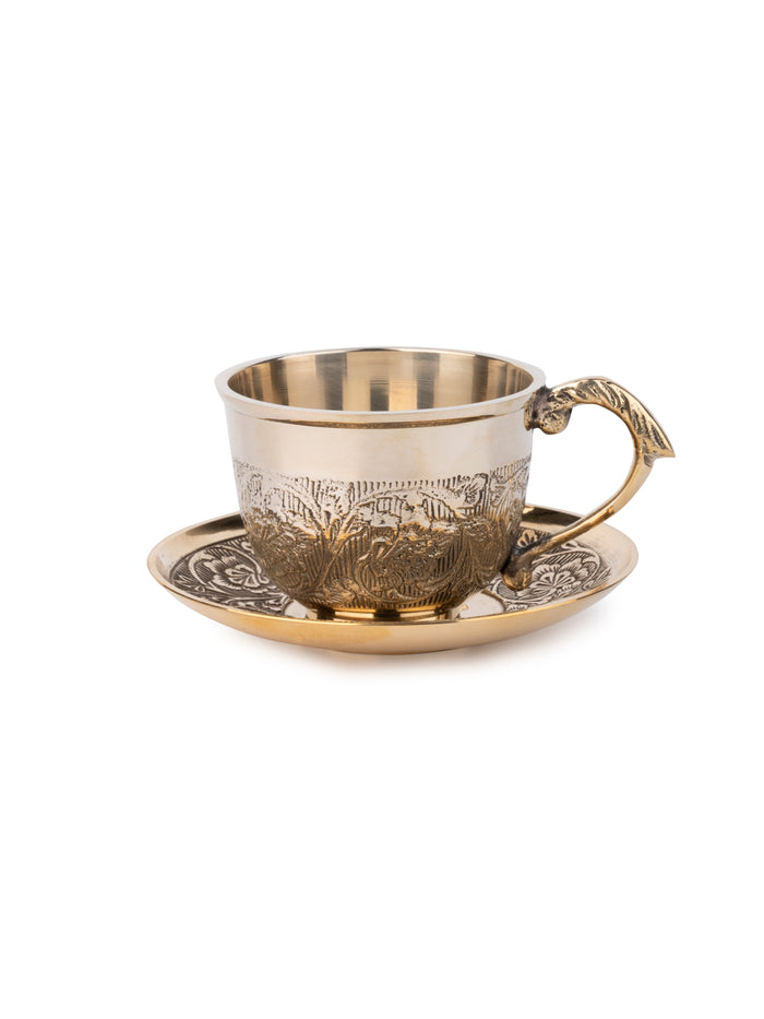 Brass Engraved Cup and Saucer set for serving Tea / Coffee
