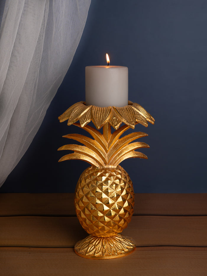Metal Crafted Golden Pineapple Candle Holder for Table Top Use