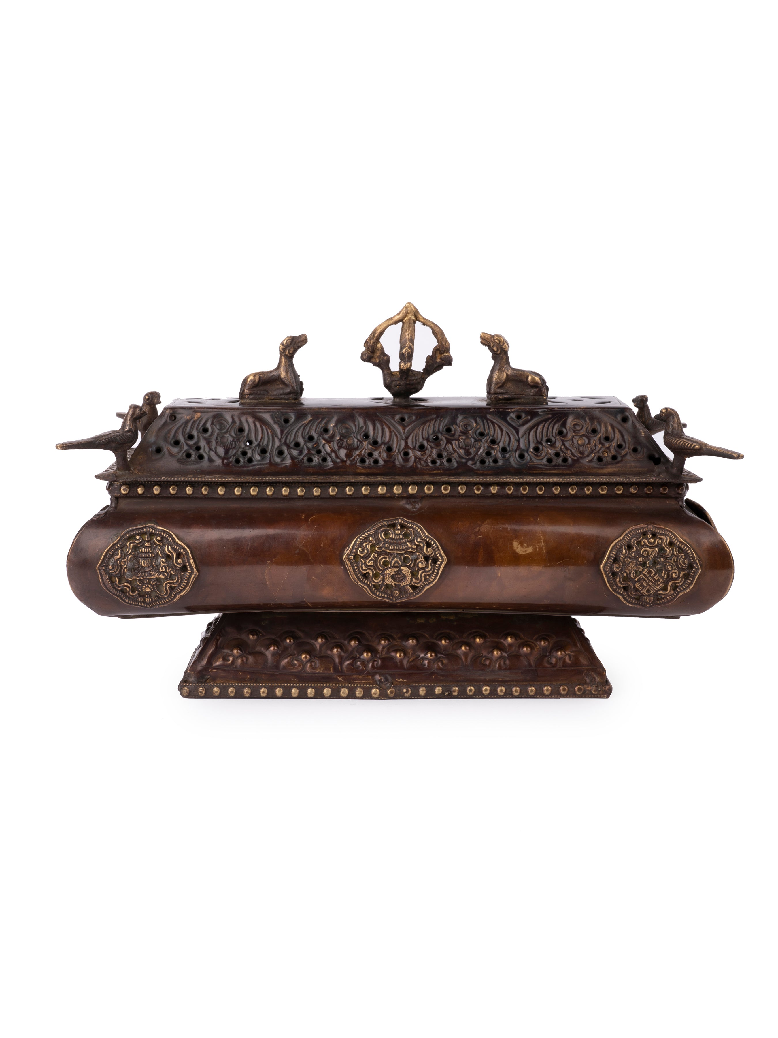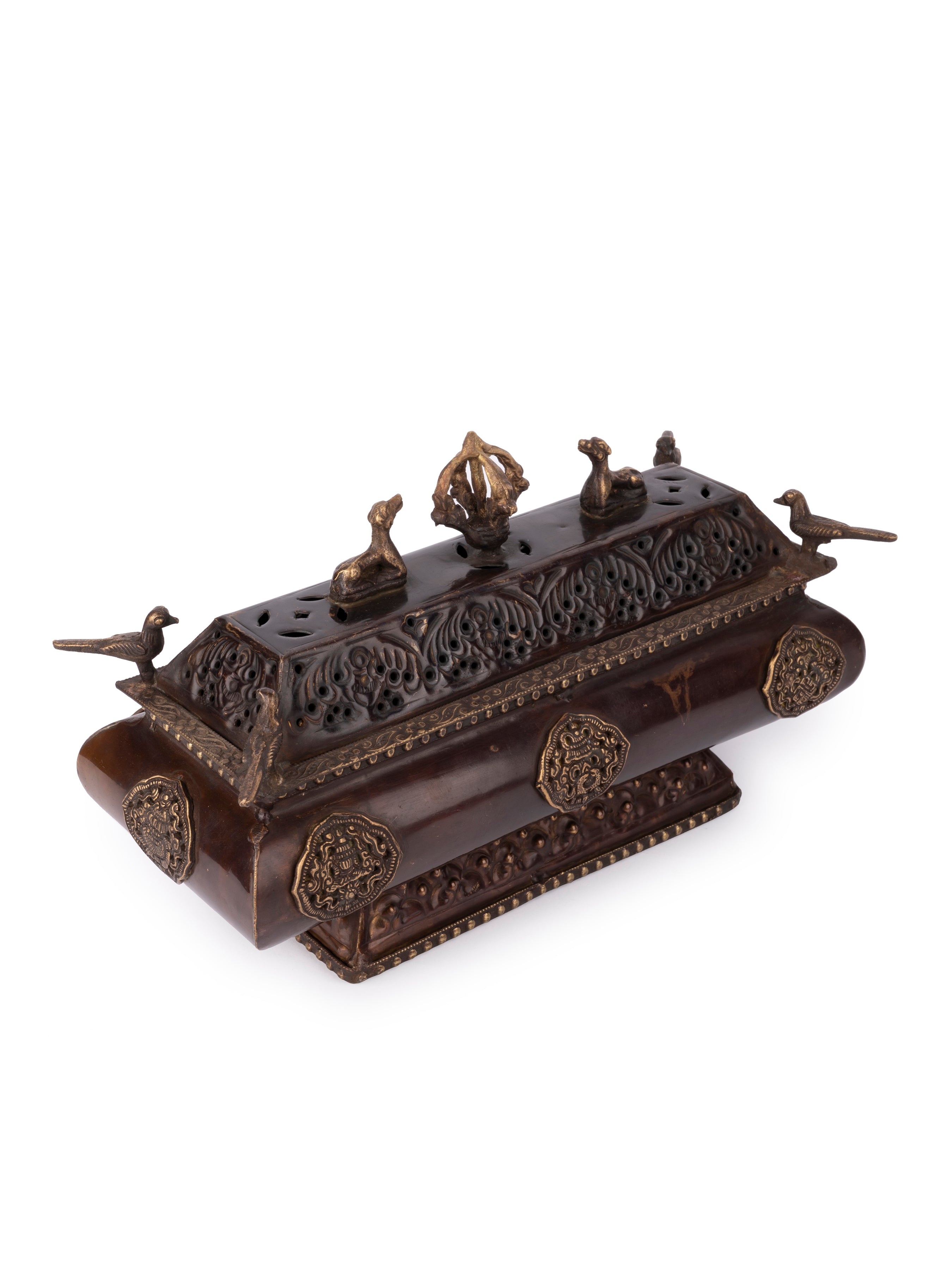 Although we call it a incense holder but actually it is a multi purpose box which can be used for storage of small items and even it can be displayed just like a home/office table decor. The unique design and shape and meshed dome makes it a great pick for your artifacts collection.