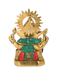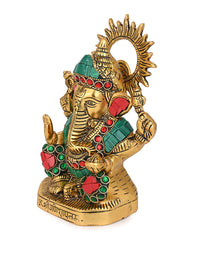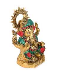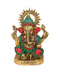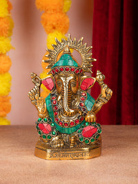 This marvelously carved metal Ganesha in colourful stones will infuse your home with vitality and warmth. Bring home this exclusive idol and may the lord of new beginnings bless your abode. Crafted from aluminium, this piece features vibrant color stones and intricate details that will surely impress. Perfect for art enthusiasts and those seeking to elevate their living spaces.