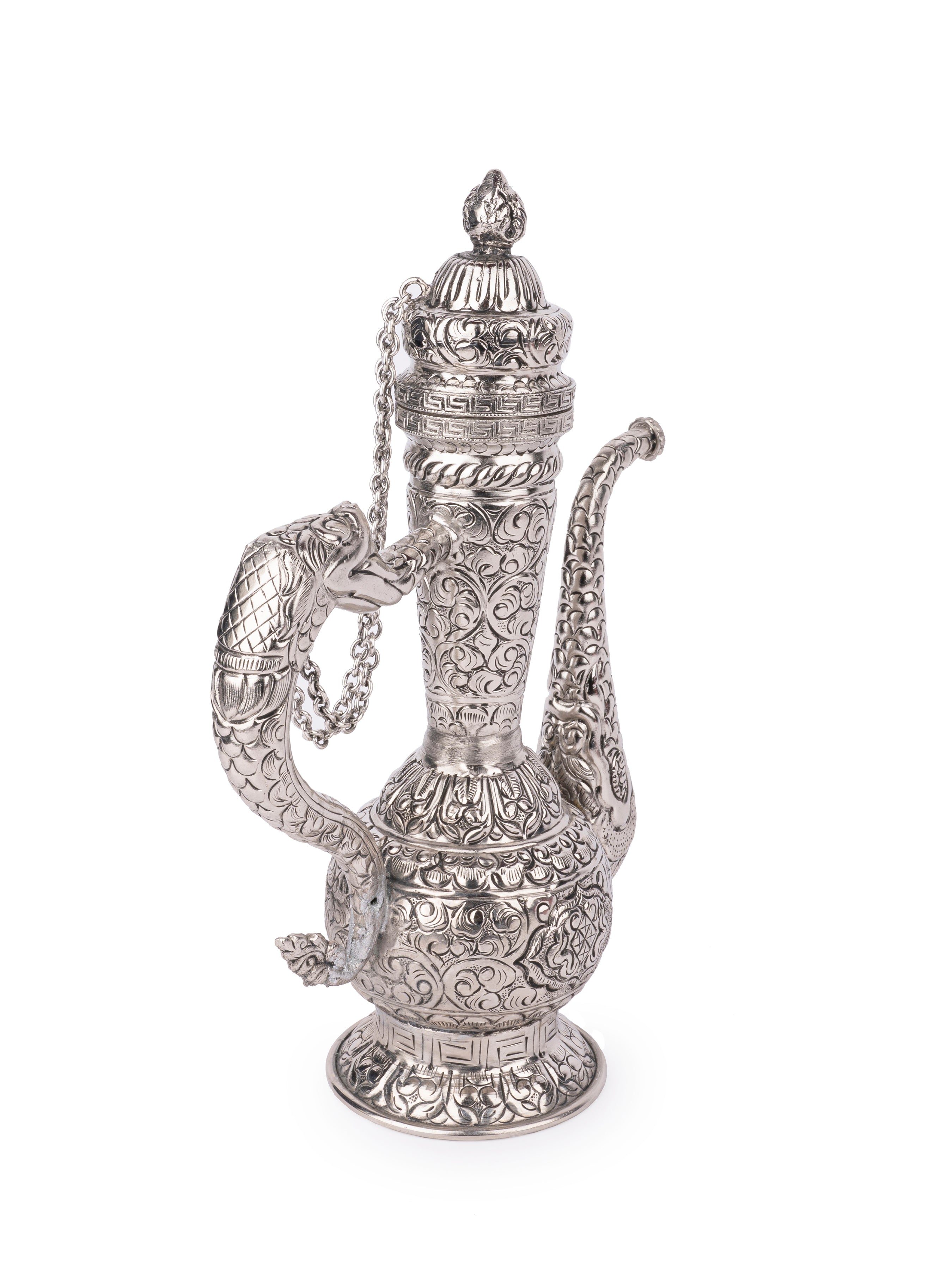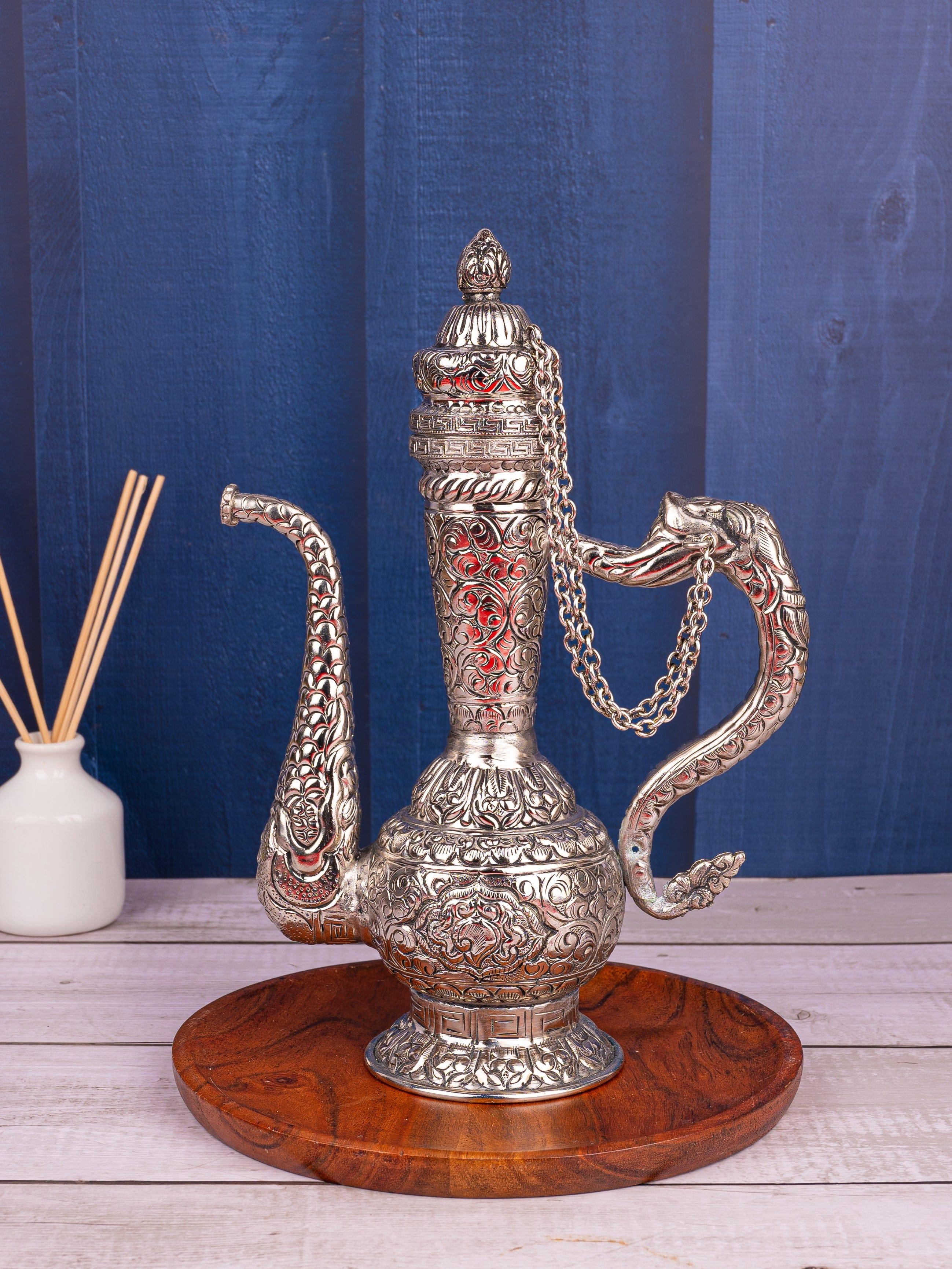 Create an aura at your home with this antique silver finish traditional Surahi. A perfect blend of old and modern era. The real beauty of this Surahi is in detailed design and hand-work, carved by expert artisans giving it an ethnic and unique look.