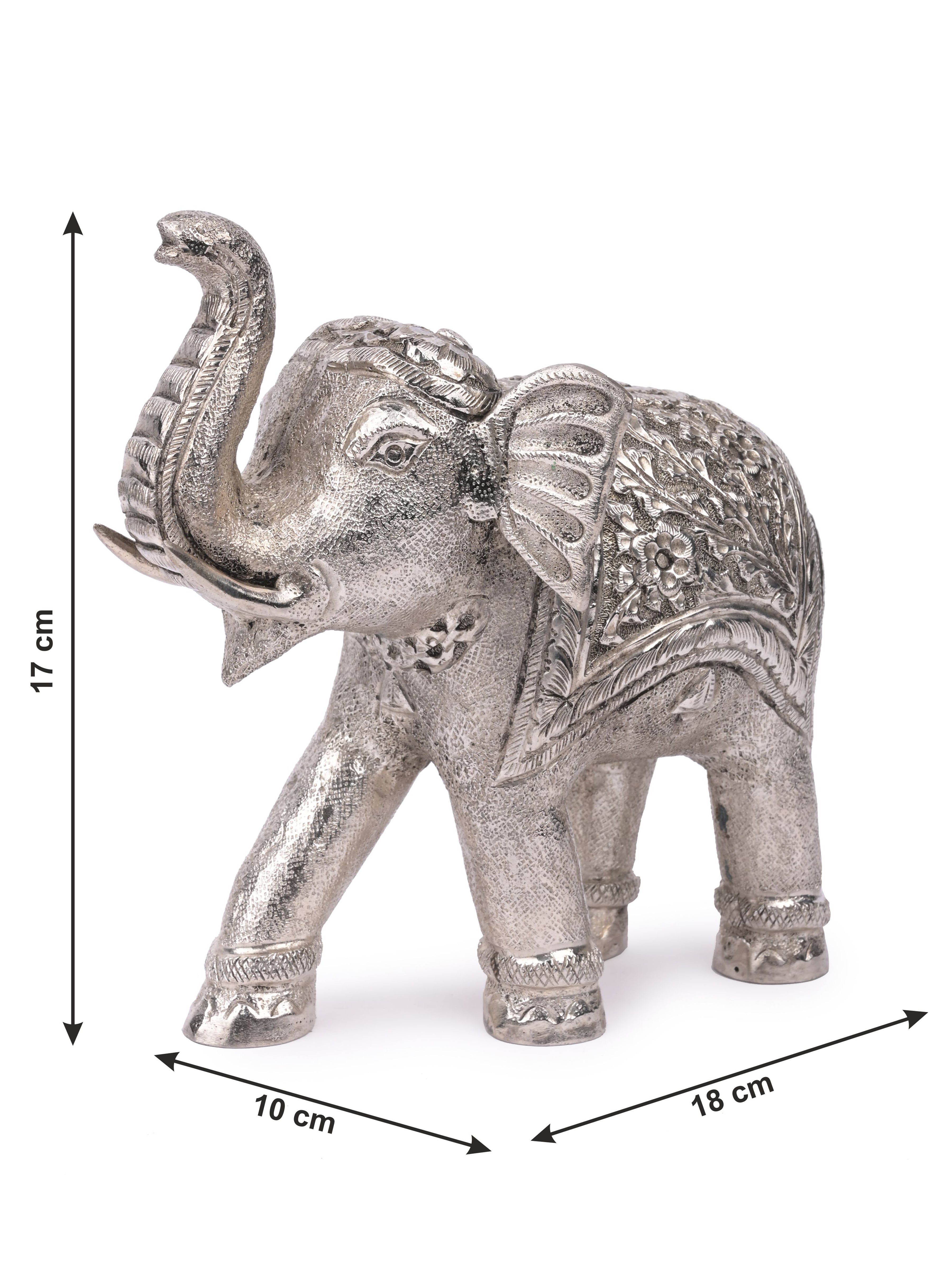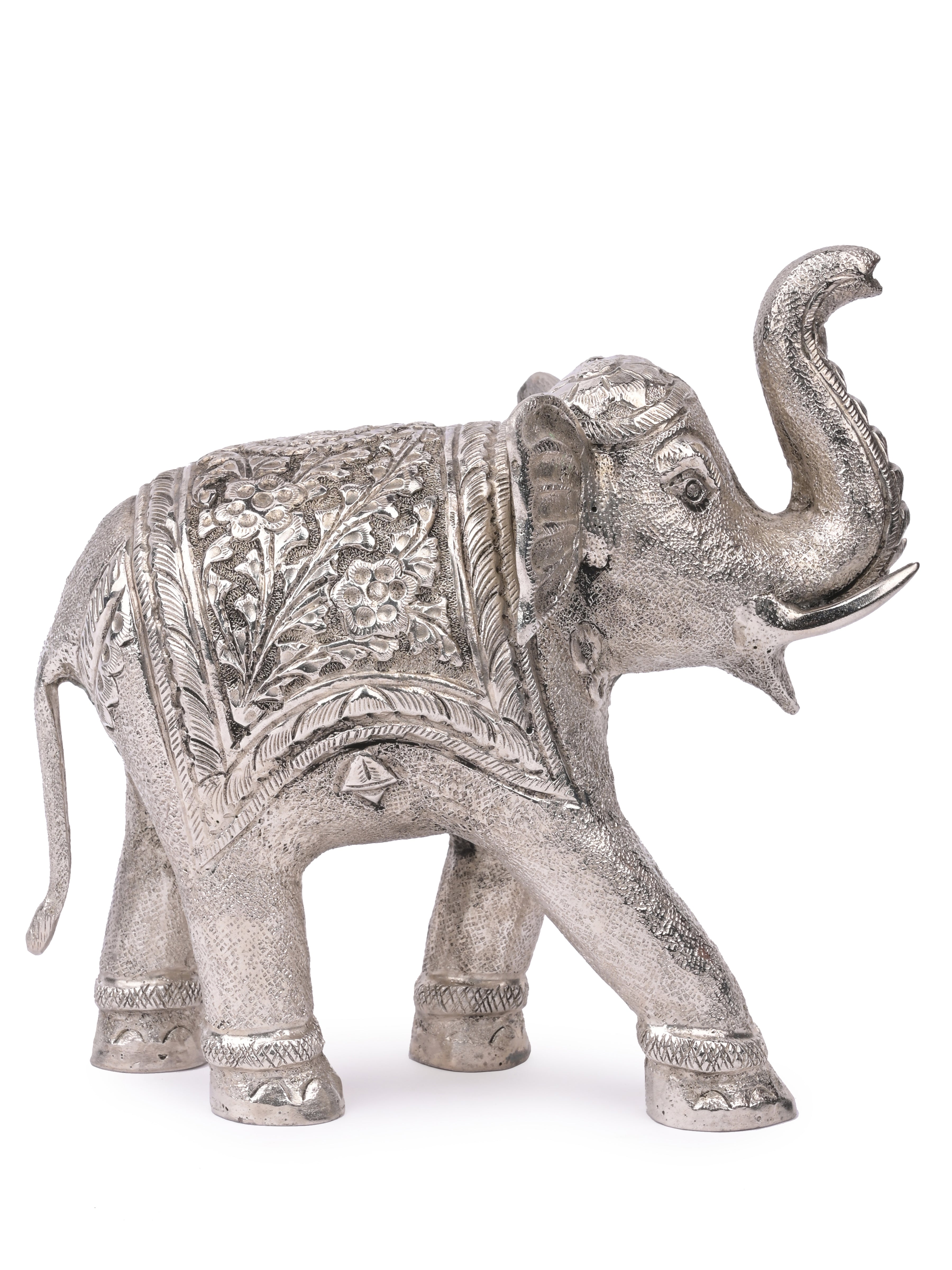 Silver holds great significance in Hinduism. According to Vastu Shastra, bringing home a silver sculpture of an elephant doubles the household's fortune and eliminates the presence of any Vastu defect. This antique white handcrafted elephant statue, made of copper with german silver coating, is a perfect showpiece to enhance your home, office table and a lucky gift option.