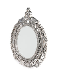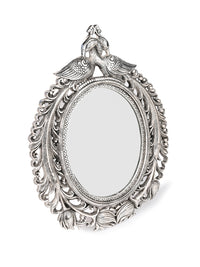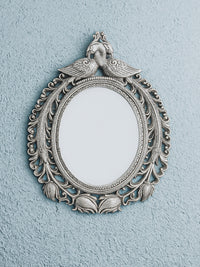 Handcrafted in aluminium with a stunning oxidised silver finish, this Peacock Frame Wall Mirror is a timeless piece of art – perfect to adorn your home and a thoughtful gifting option for your loved ones.