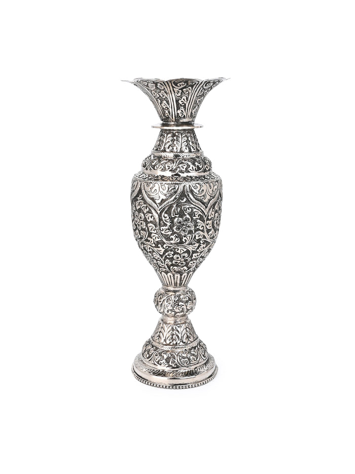 Antique Finish Oxidized Silver Stylish Flower Vase for Home Office Decor - 12 inches