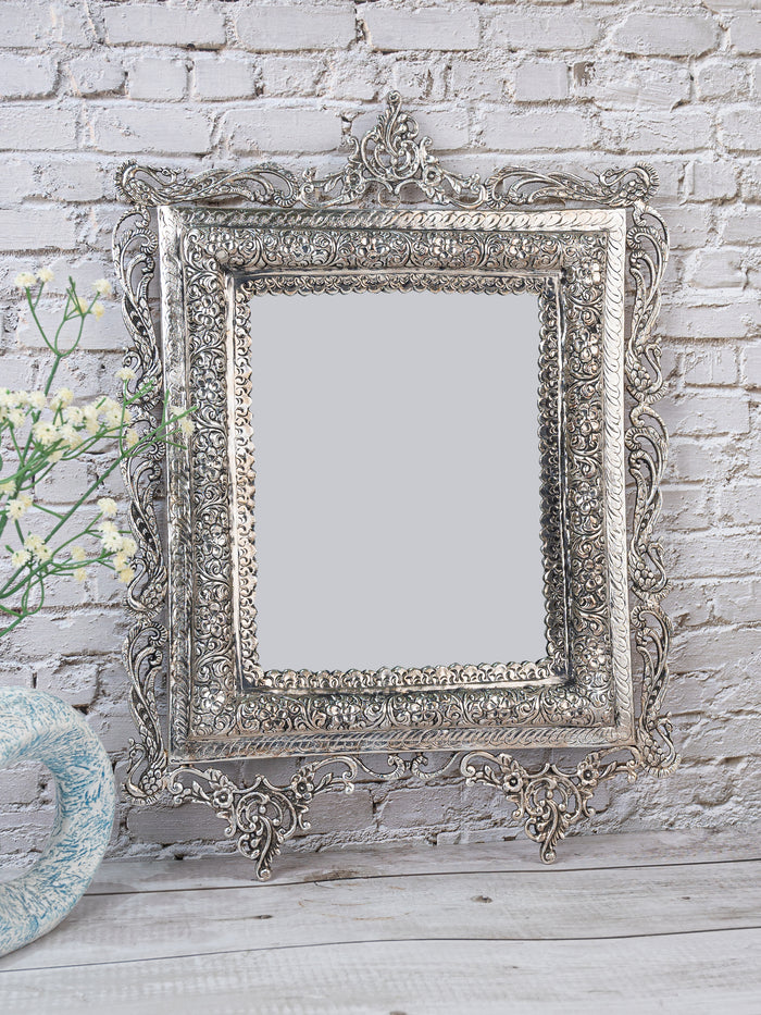 Oxidized Silver Finish Vintage Charm Rectangular Wall Mirror - 16 inches