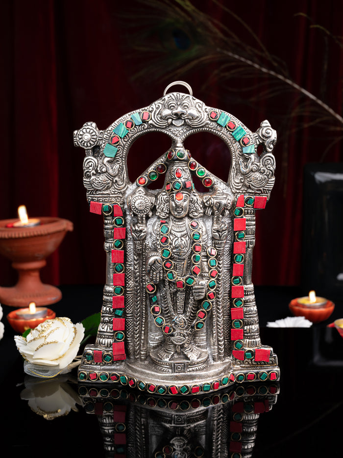 Tirupati Balaji Metal Statue with colorful Meenakari work - 10 inches - Available in Gold and Silver color
