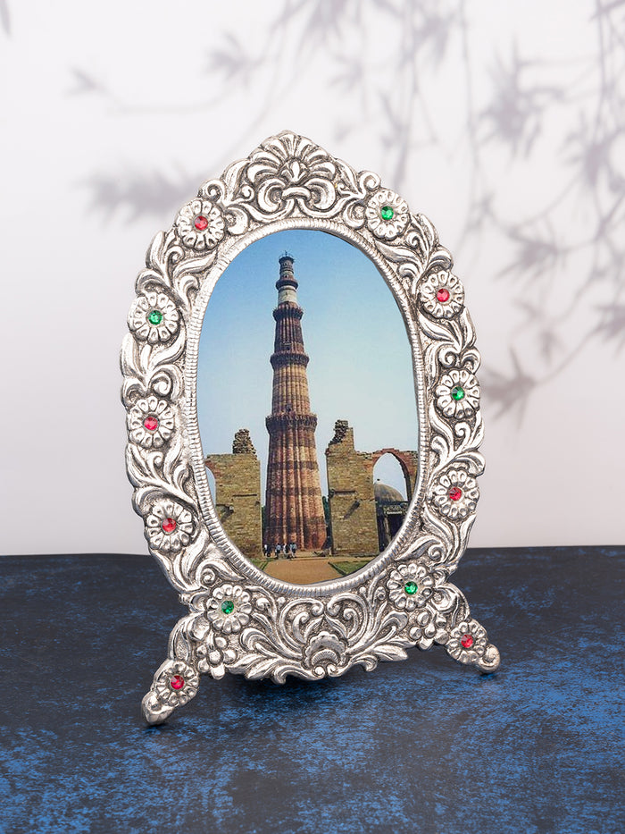 Metal crafted stone embellished floral pattern photo frame - Assorted designs