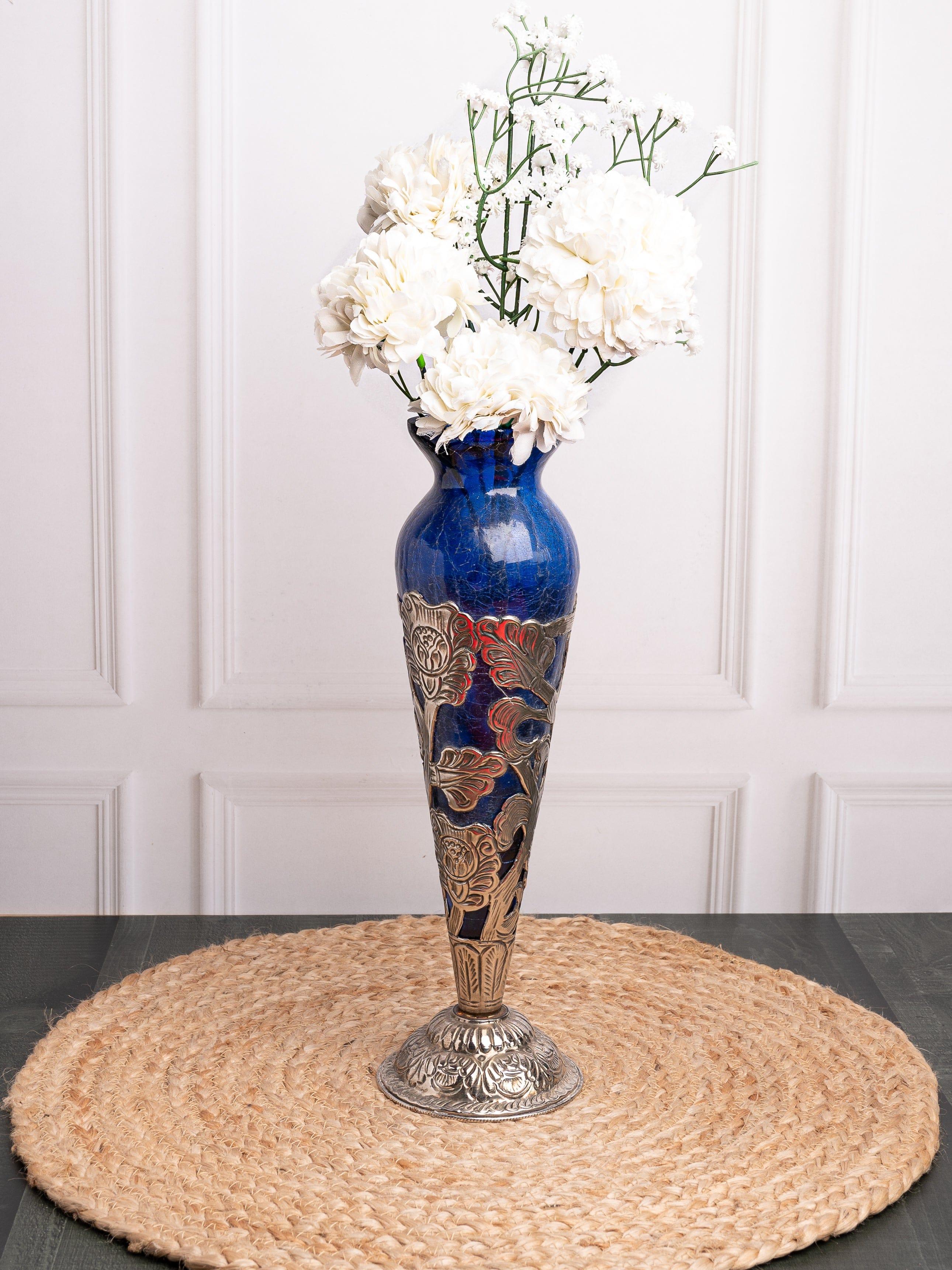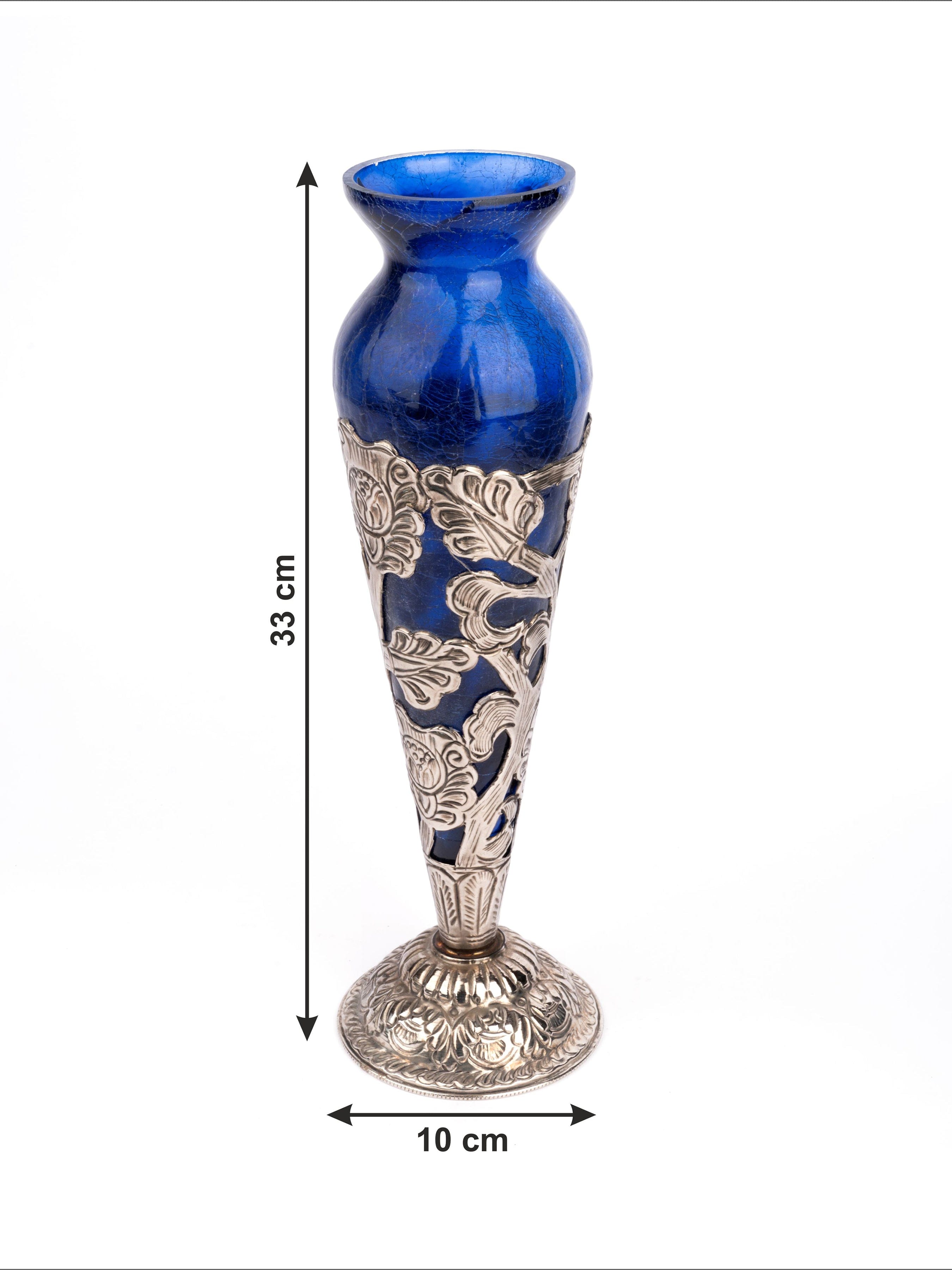 Brighten up your room with fresh aromatic flowers in this exquisite one and only flower pot. This Flower pot with exquisite and intricate hand carving work, floral motifs and glossy shining glass pot is a perfect amalgam of contemporary designing and traditional handicraft. A perfect new addition to your home decor and a fabulous royal gifting idea to make someone feel special.