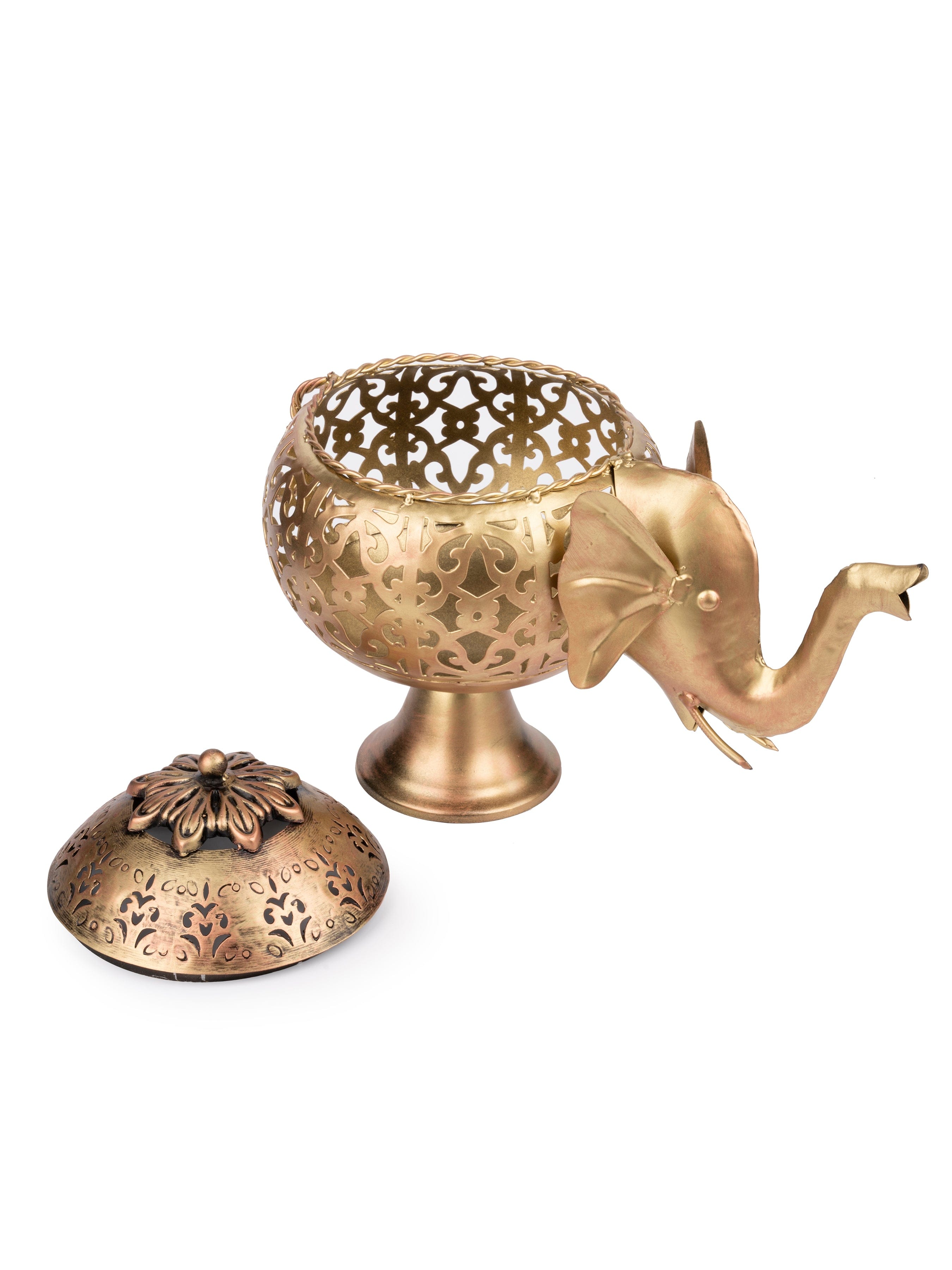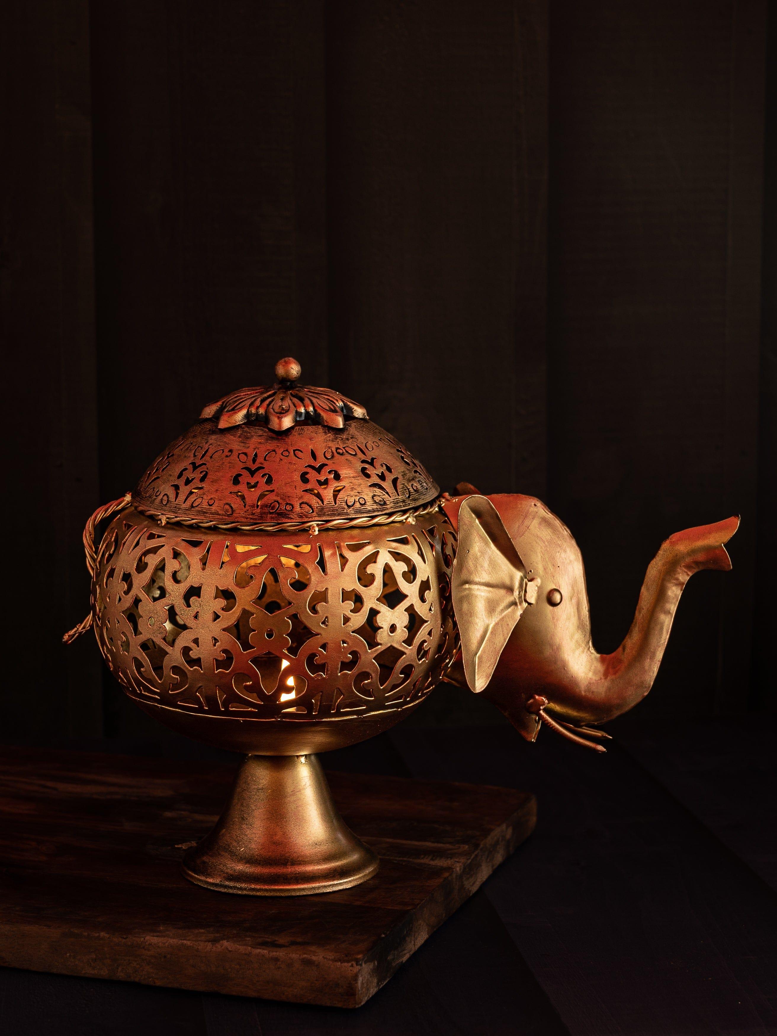 A fine detailed piece which gives your place an instant makeover. The dim lit room and gentle flicker of the light creates a soothing and relaxing atmosphere, helps you set up a romantic dinner or meditate or have an evening get-together with friends. This stylish vintage elephant tealight holder will give your interior a fine touch of freshness and originality.