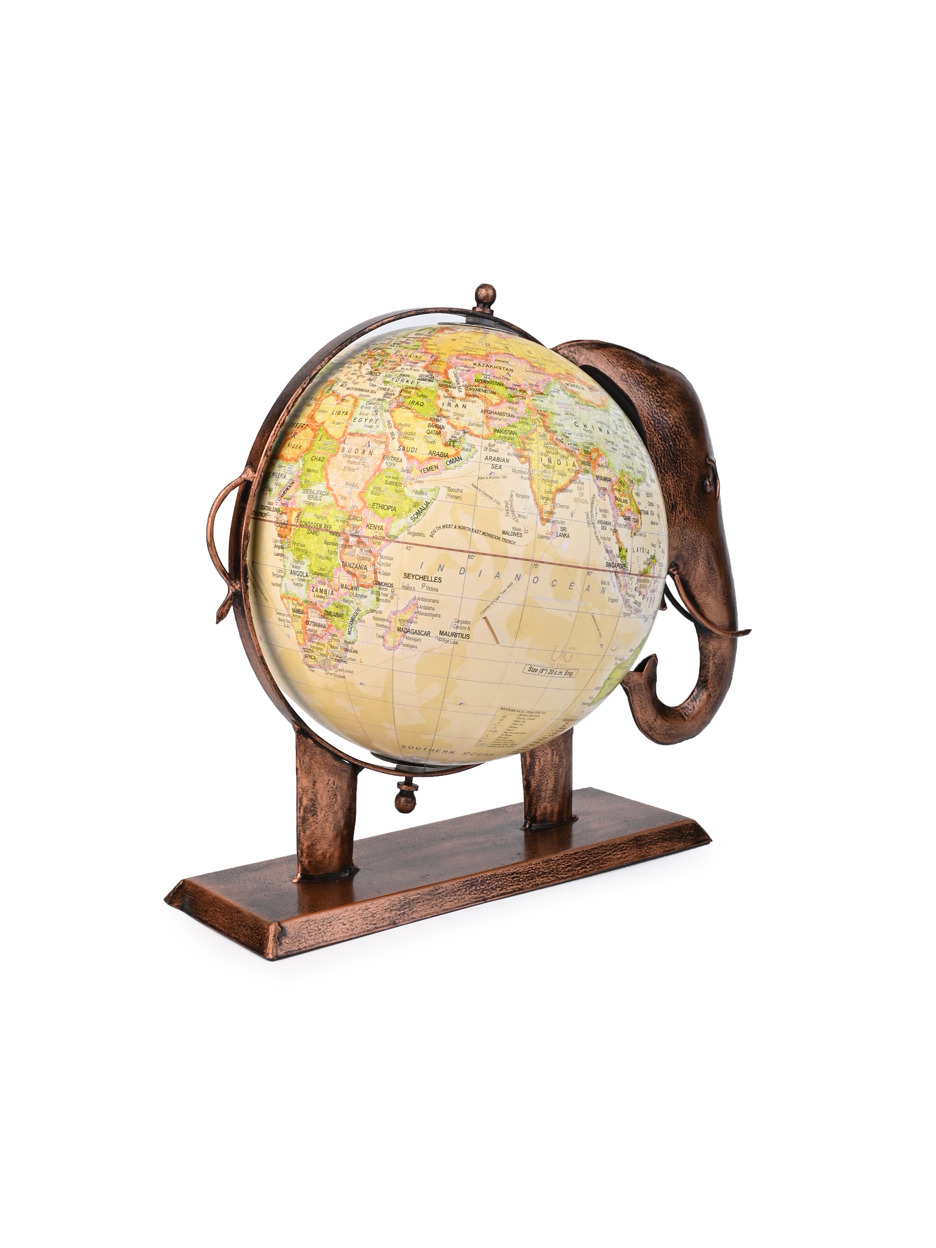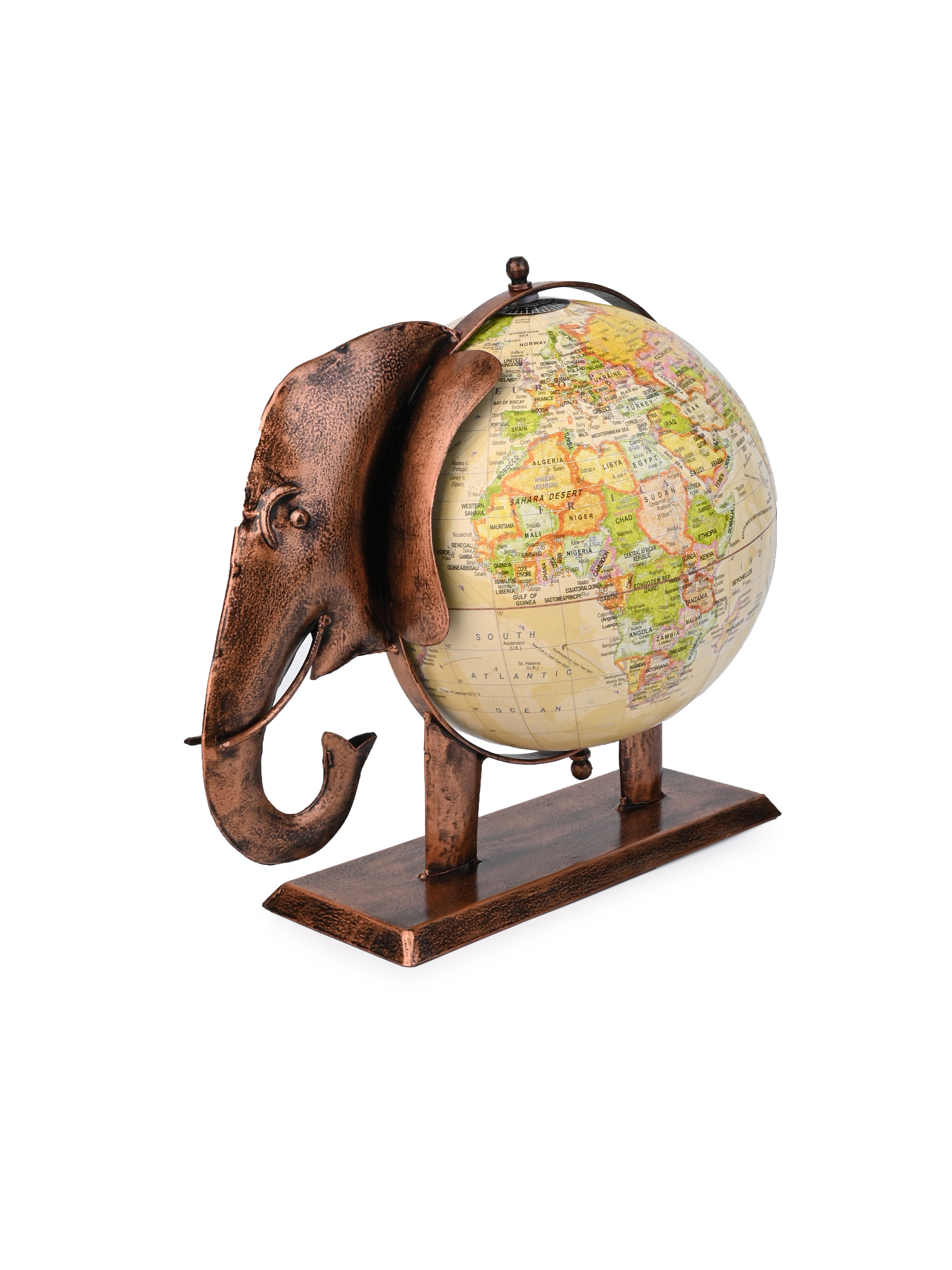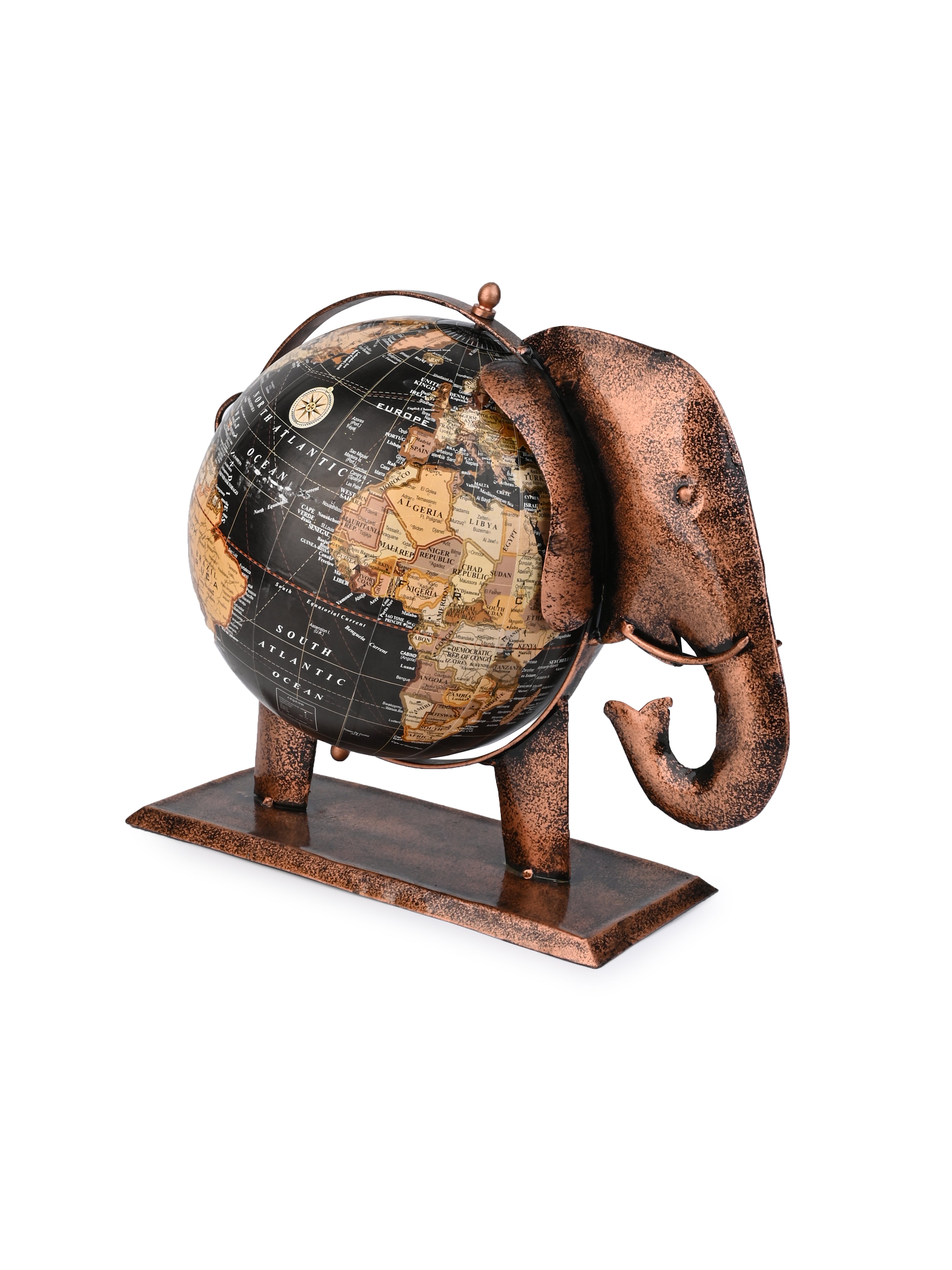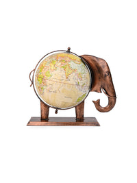 Handcrafted Metal Elephant Globe for Home and Office - 14 inches