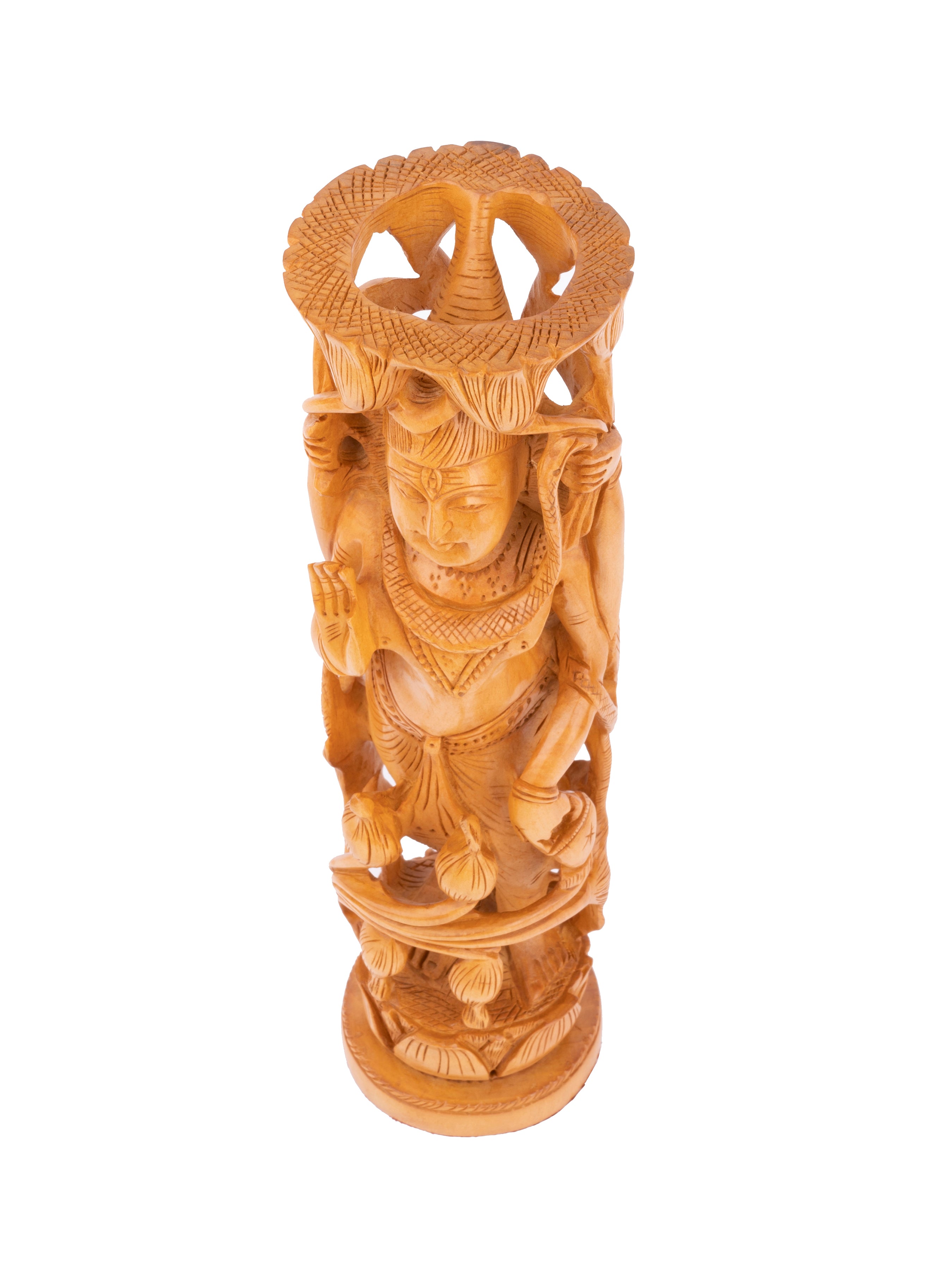 This is a fascinating piece of art from top to bottom. The statue of lord Shiva has been created after days of careful carving on a single piece of wood. It clearly shows the skill, dedication and patience of the artisan who created it. Place the figurine in your home temple or living room or office and it will be your proud possession.