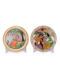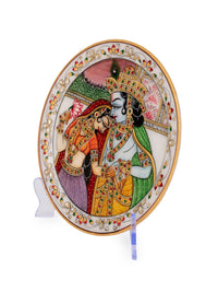 These exquisite marble plates feature a beautiful and intricate hand-painted artwork depicting Radha Krishna, the divine Hindu couple. The detailed portrait is sure to bring a touch of cultural richness and serenity to any home. Plates are made from best quality marble and comes with a stand for easy display.