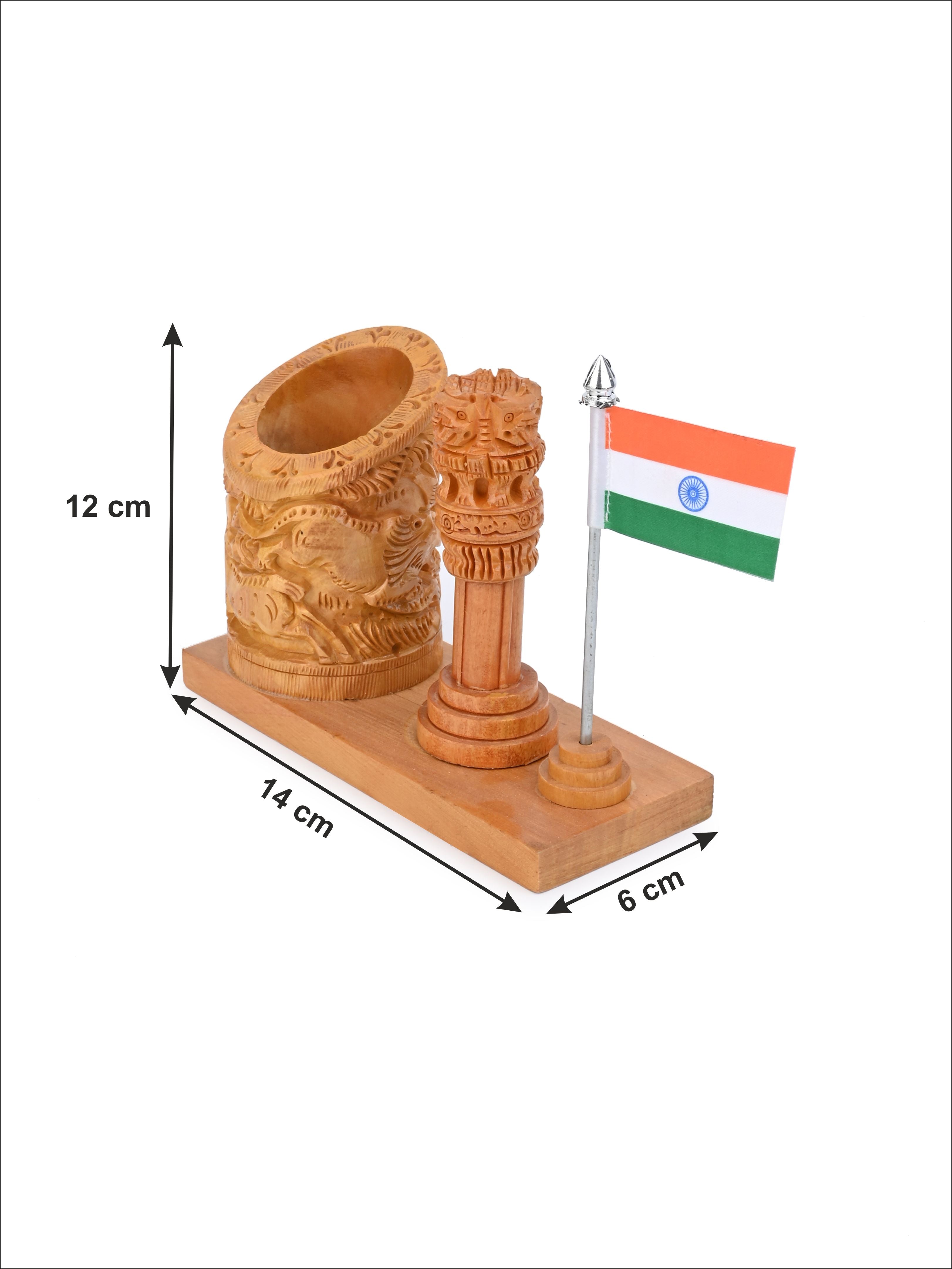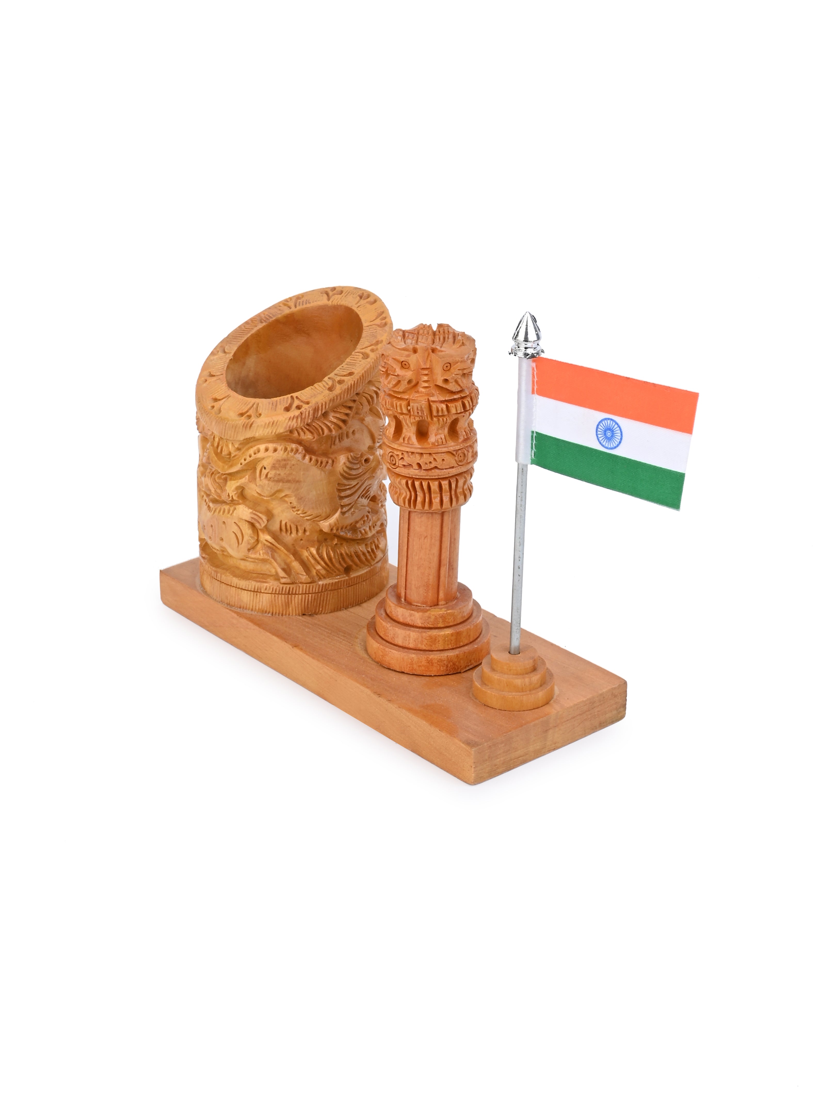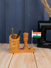Presenting a must have desk organiser / pen holder for every Indian office desk, hand crafted from the finest quality kadam wood. The Ashoka Pillar and Tricolor, 2 most prestigious emblems of our country will make you feel proud and also express your solidarity for the nation.