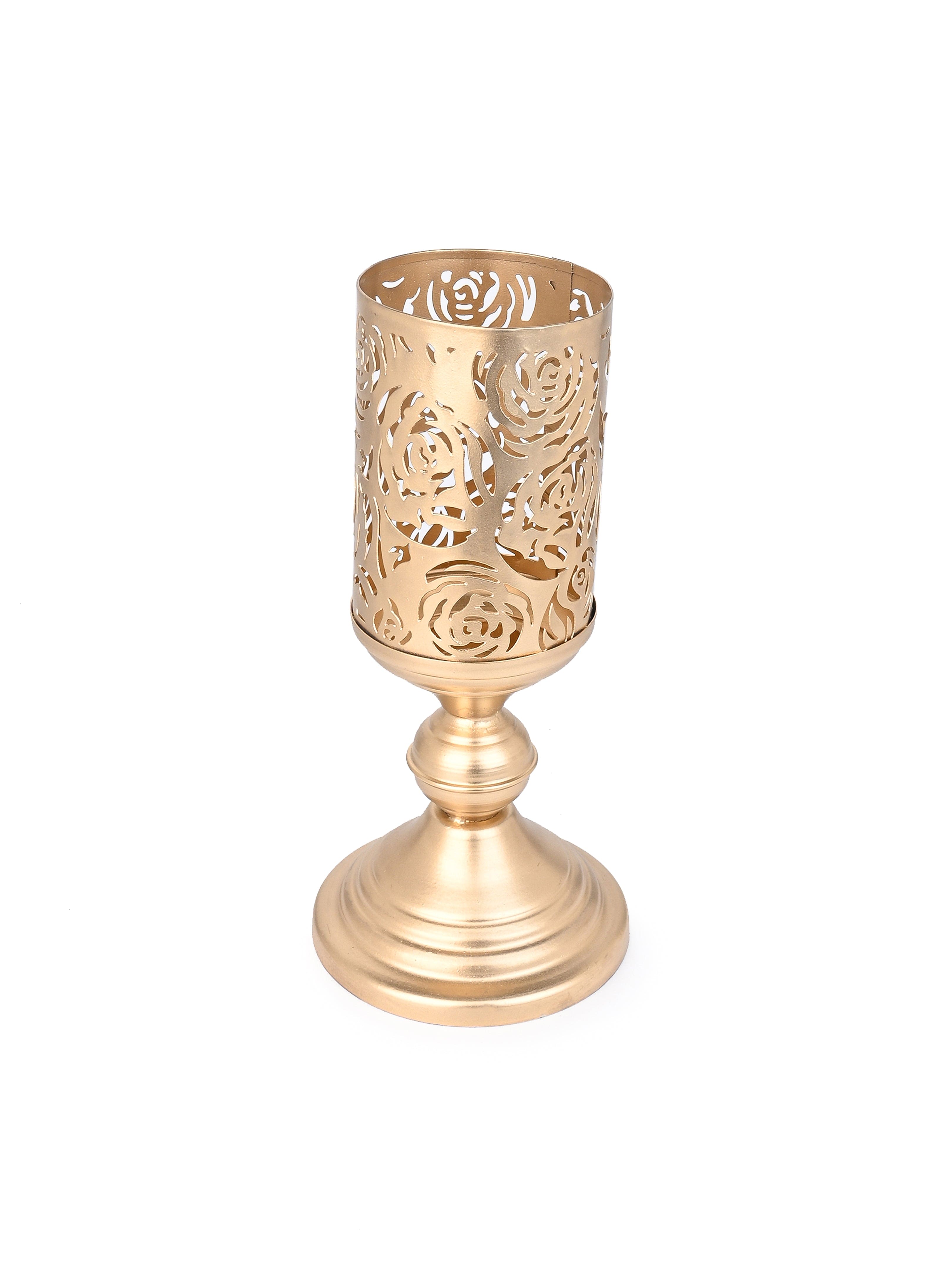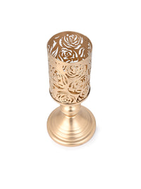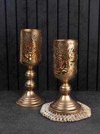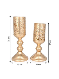 Set of 2 Cylindrical Metal Candle Holders with Cutwork design on the Body