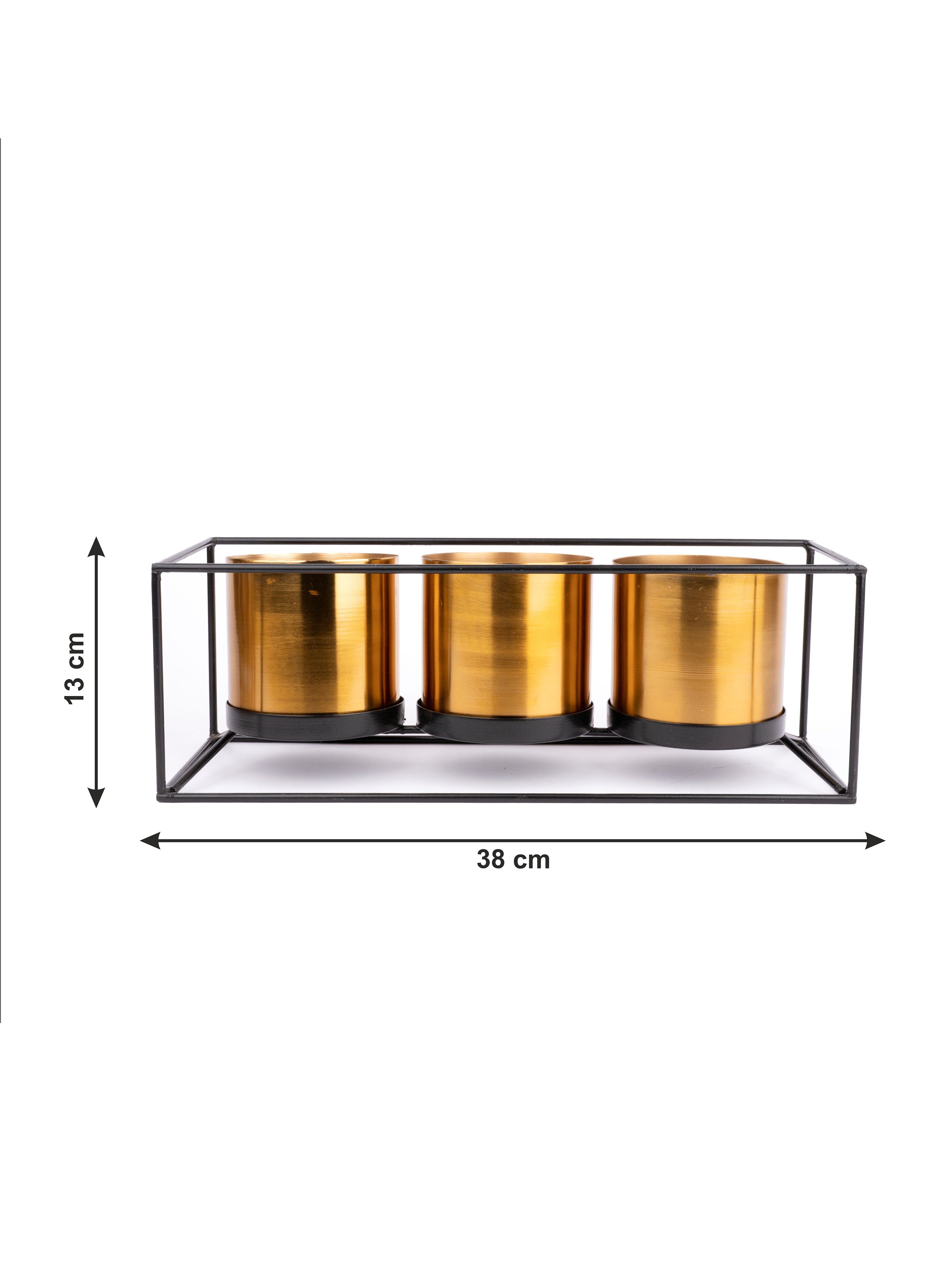 The 3 golden planters sit elegantly next to each other on a black metal stand. Adorn the metal pots with small ornamental flowers and indoor plants to create a sophisticated décor. The best way to use this decorative metal plant pots is to place a plastic pot with a plant inside it. To maintain the finish, do not put mud and plant directly. Also, avoid placing heavy ceramic pots inside as they can topple the planter.