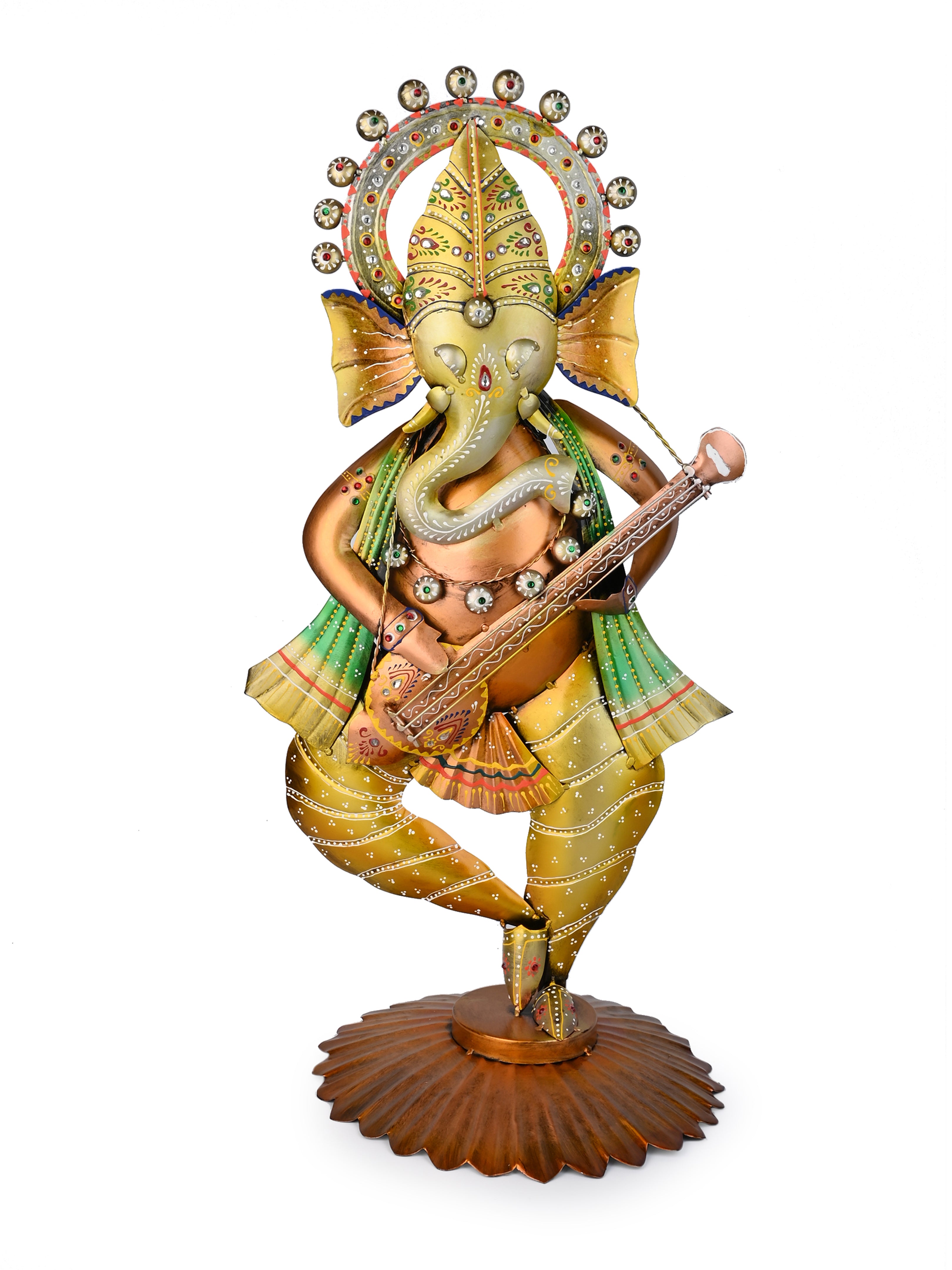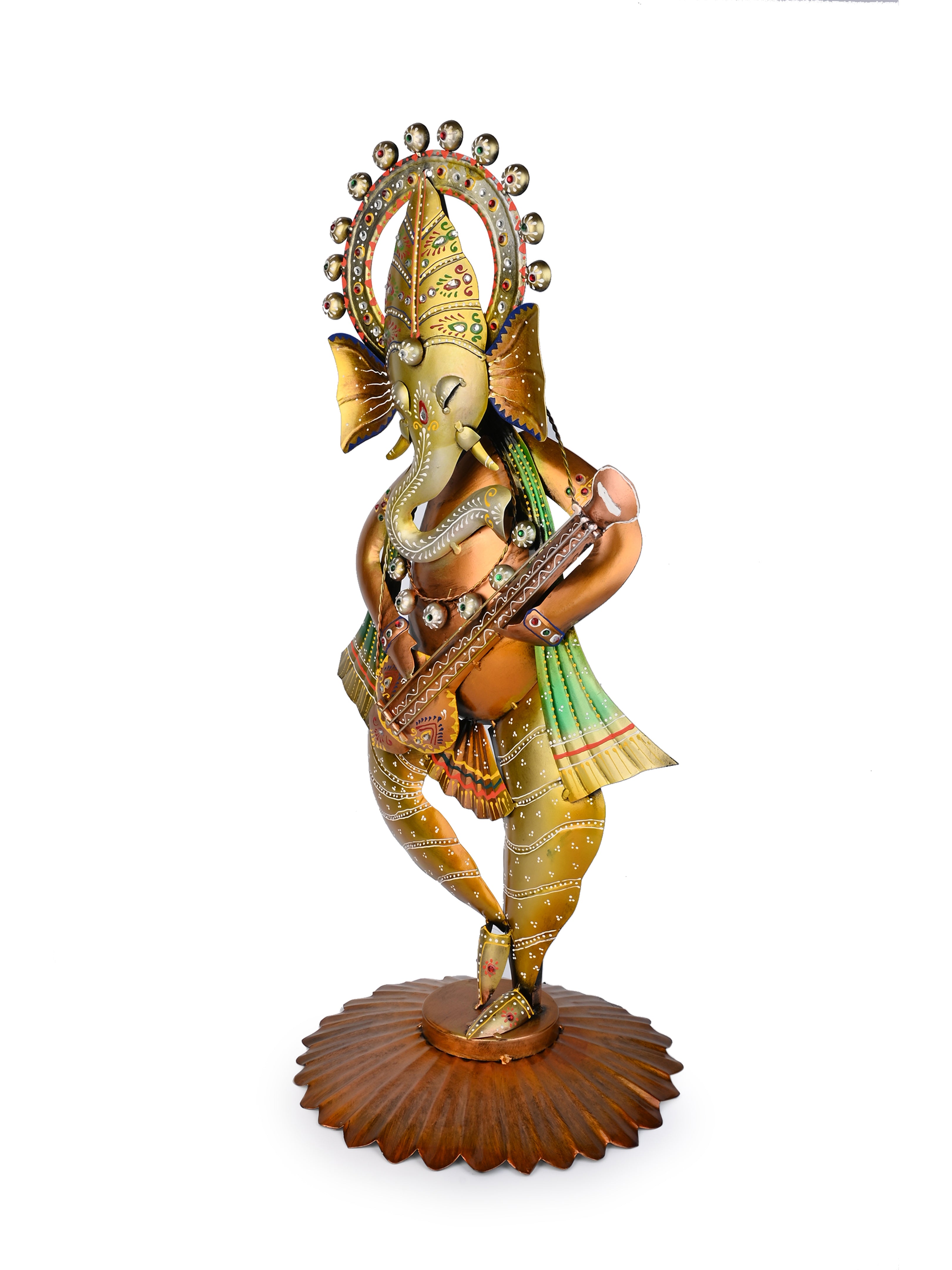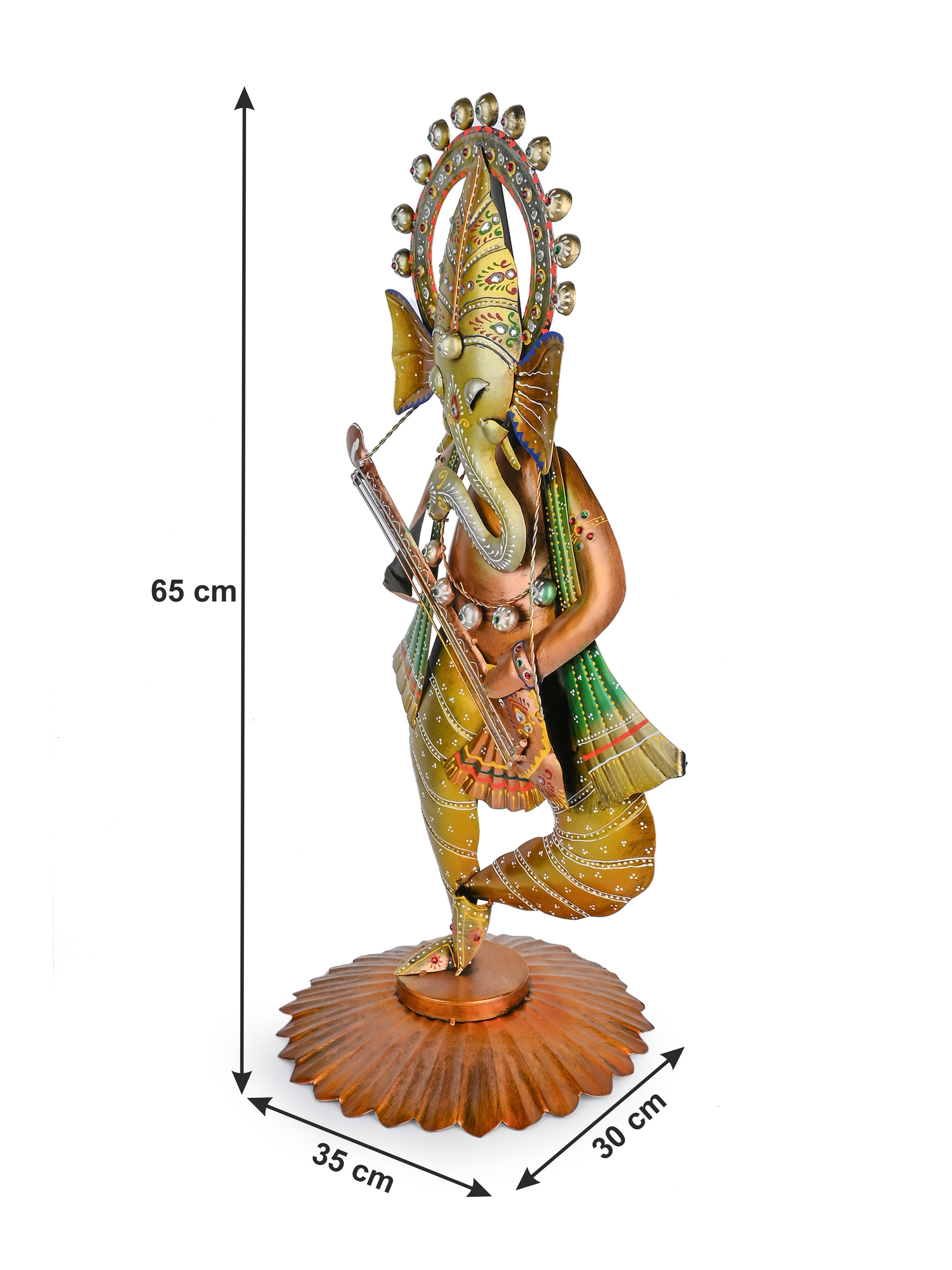 Standing Lord Ganesh with Sitar - Metal Figurine - 2 feet height
