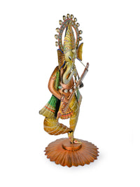 Immerse your surroundings in the divine melody with our extraordinary metal figurine of Lord Ganesha standing on one leg with the Sitar in hand. This unique artistry adds a regal touch, making it a eye-catching point for your home or workspace.