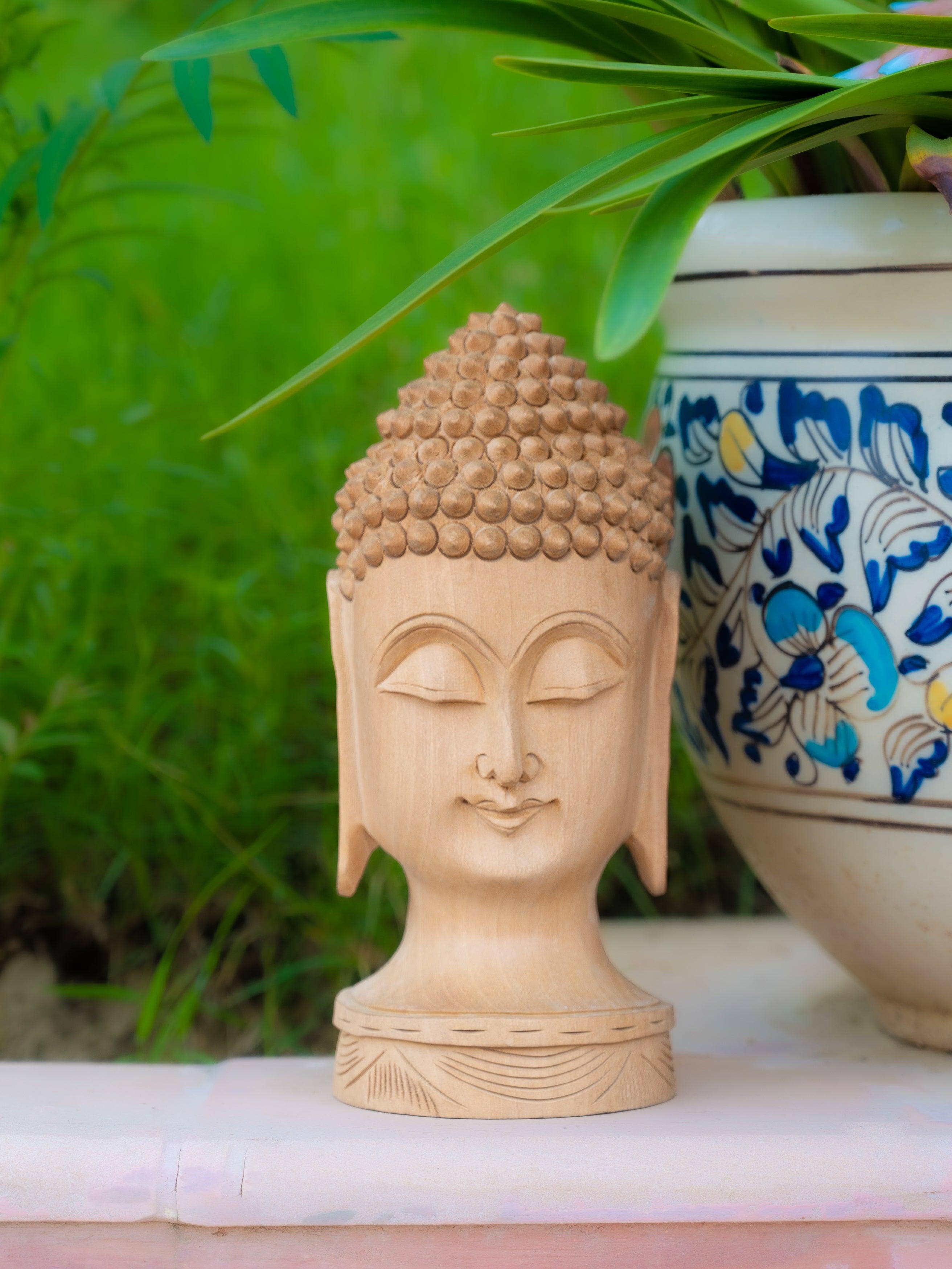 Keeping an idol of Buddha in the house and office is considered auspicious, it brings peace and positive vibes to your home and office and maintains the aura. This large buddha head is made of good quality Kadam wood and it has very fine workmanship.