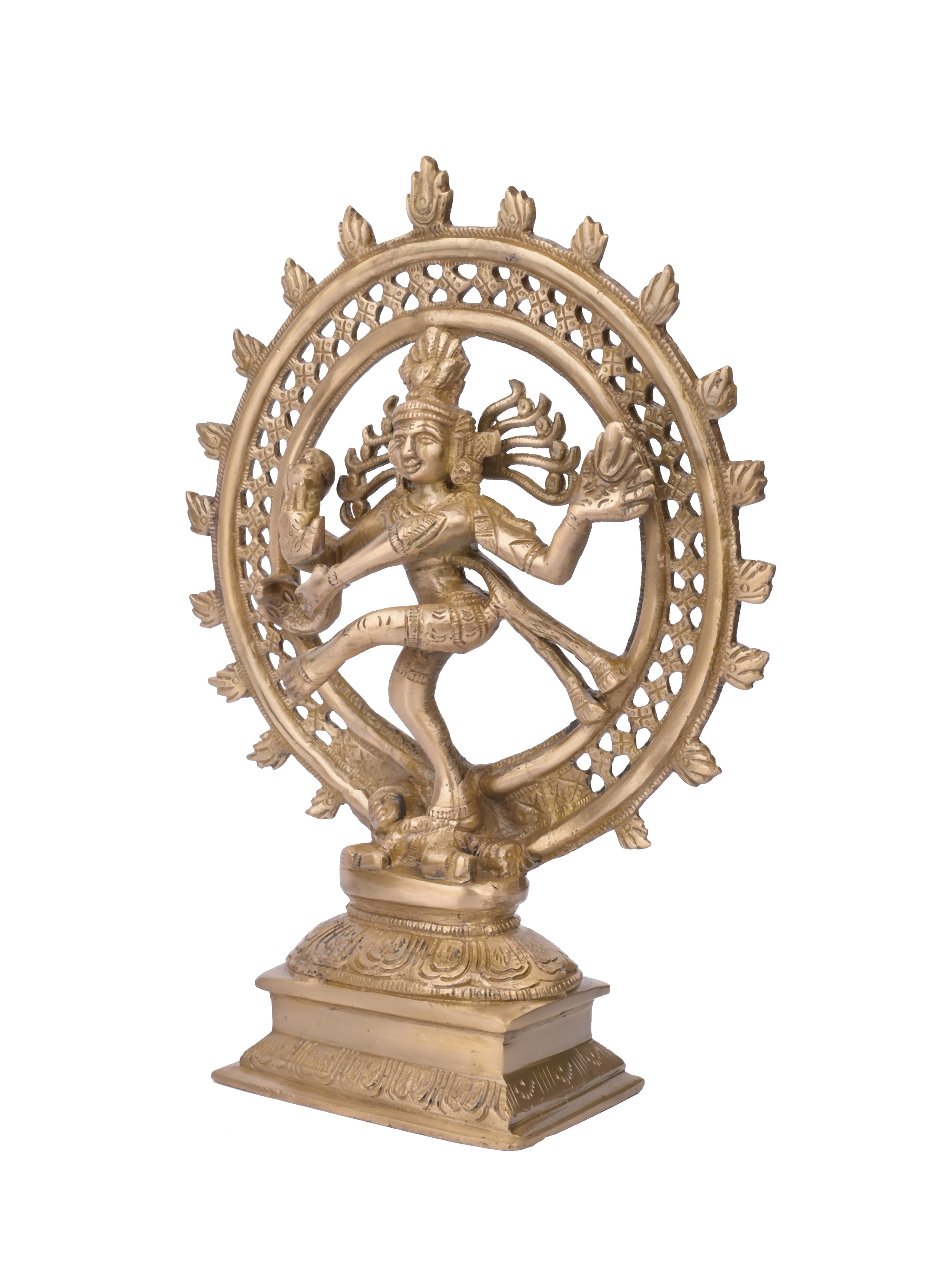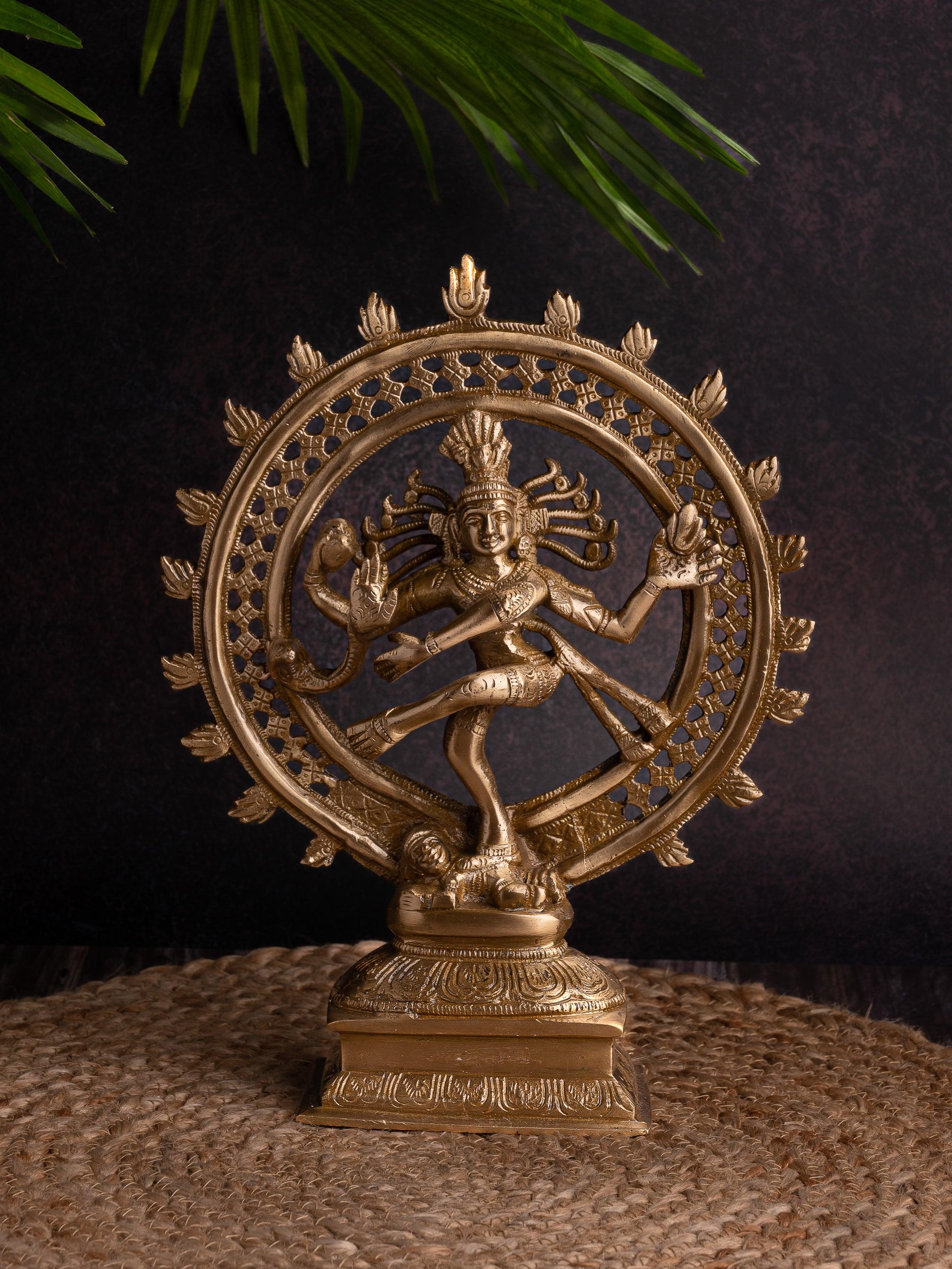 The idol is a depiction of Lord Shiva as a divine cosmic dancer, performing a dance known as Tandav, which is called Nataraja is a Sanskrit. Brass is considered a sacred metal, having heritage value that can be passed on from one generation to the next. Reminiscent of an ancient era, brass artifacts lend a vintage charm and illuminate your spaces.