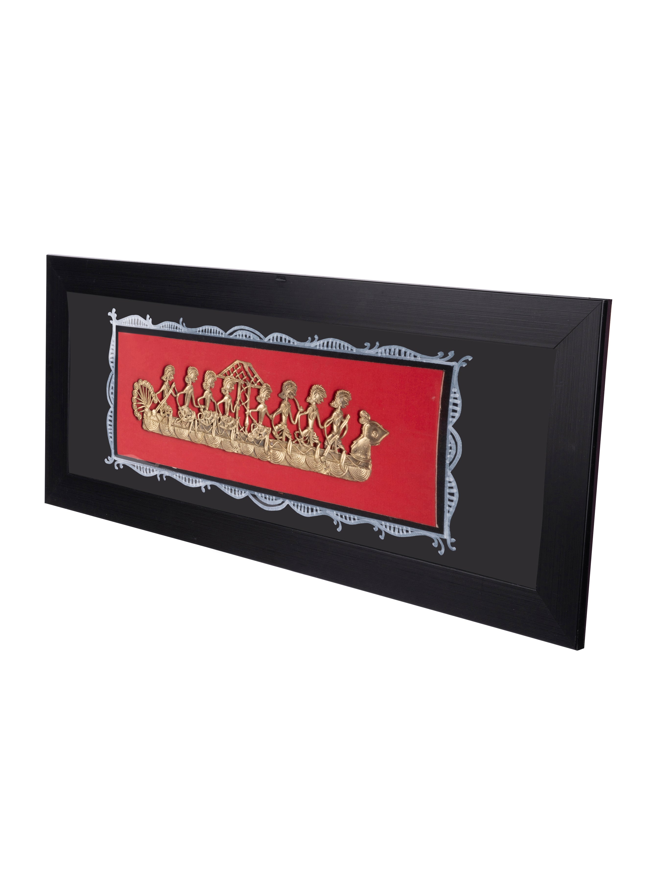 This stunning scene of an Indian tribal boat race is contained within a gorgeous brass wall hanging frame. You can use this lovely tribal artwork to decorate your home or workplace. This beautifully crafted piece of art will elevate your interior design to the next level.