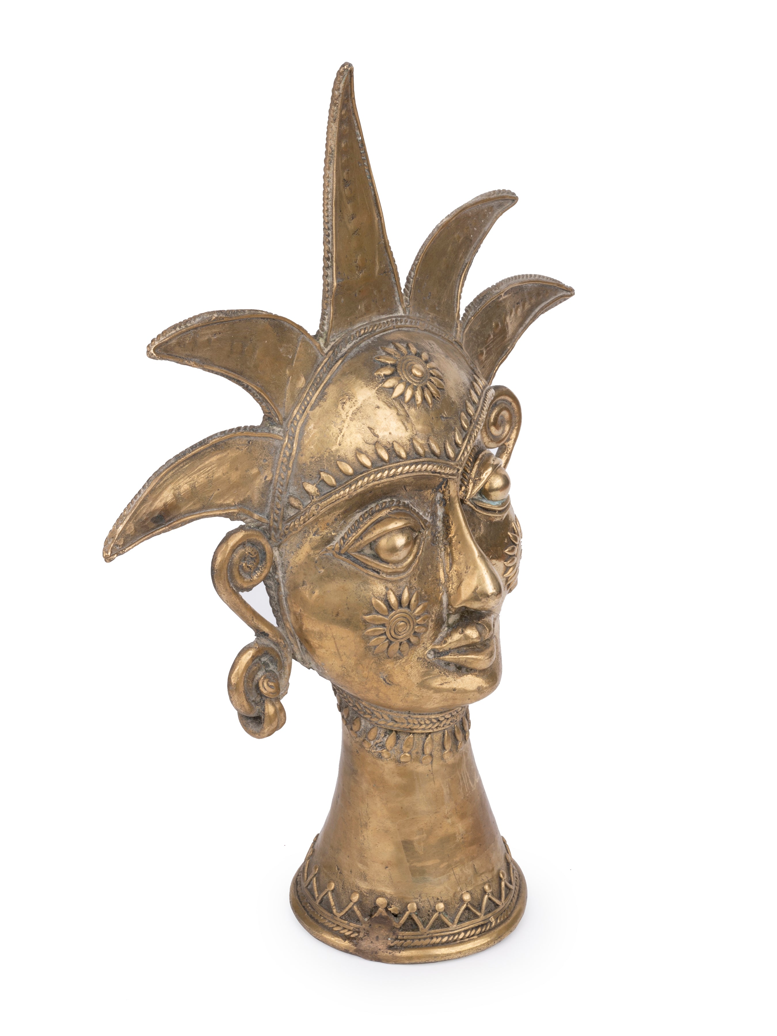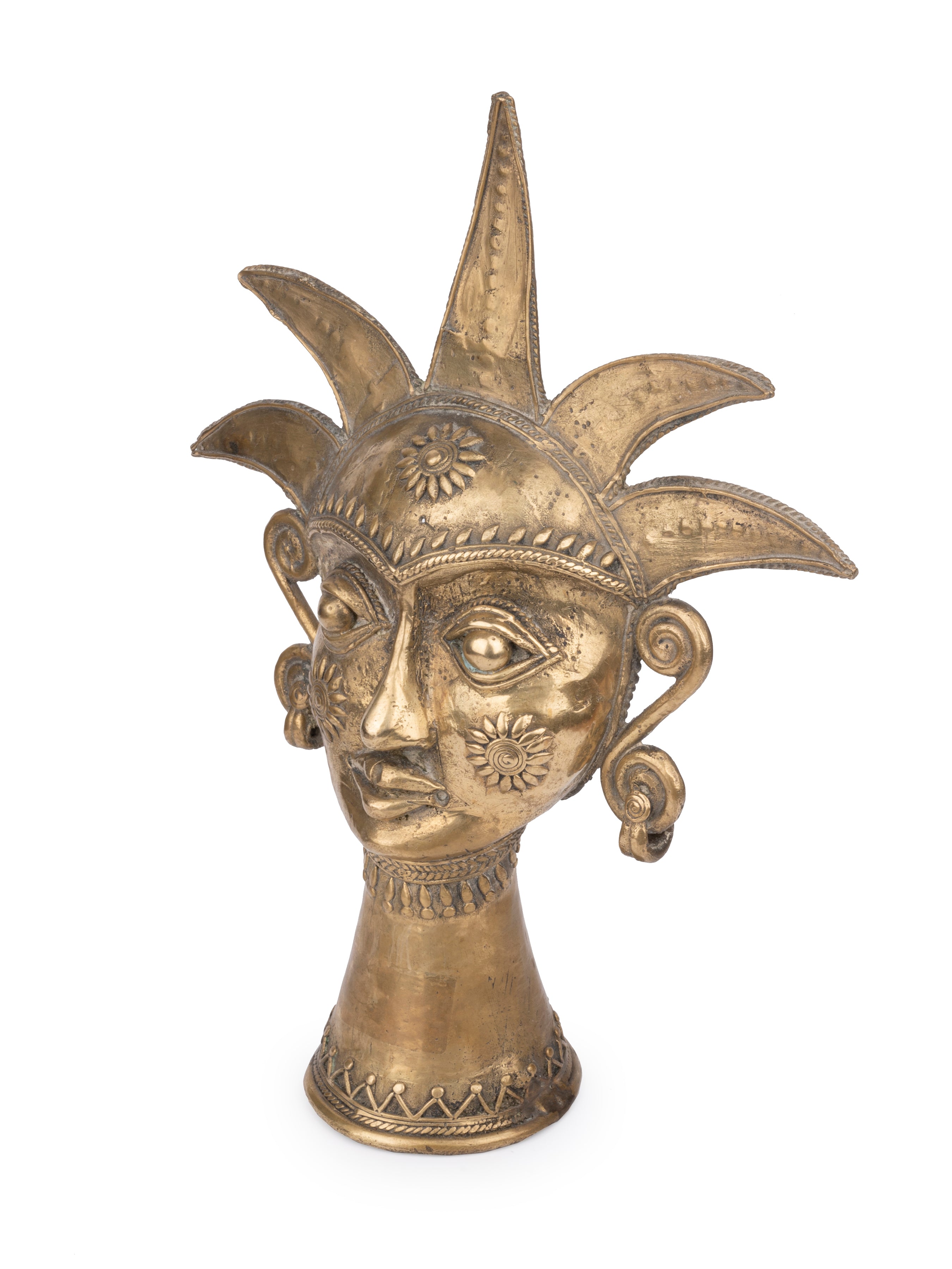 Dokra Craft Standing Sun Face made of Brass Metal - 12 inches height