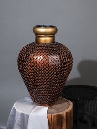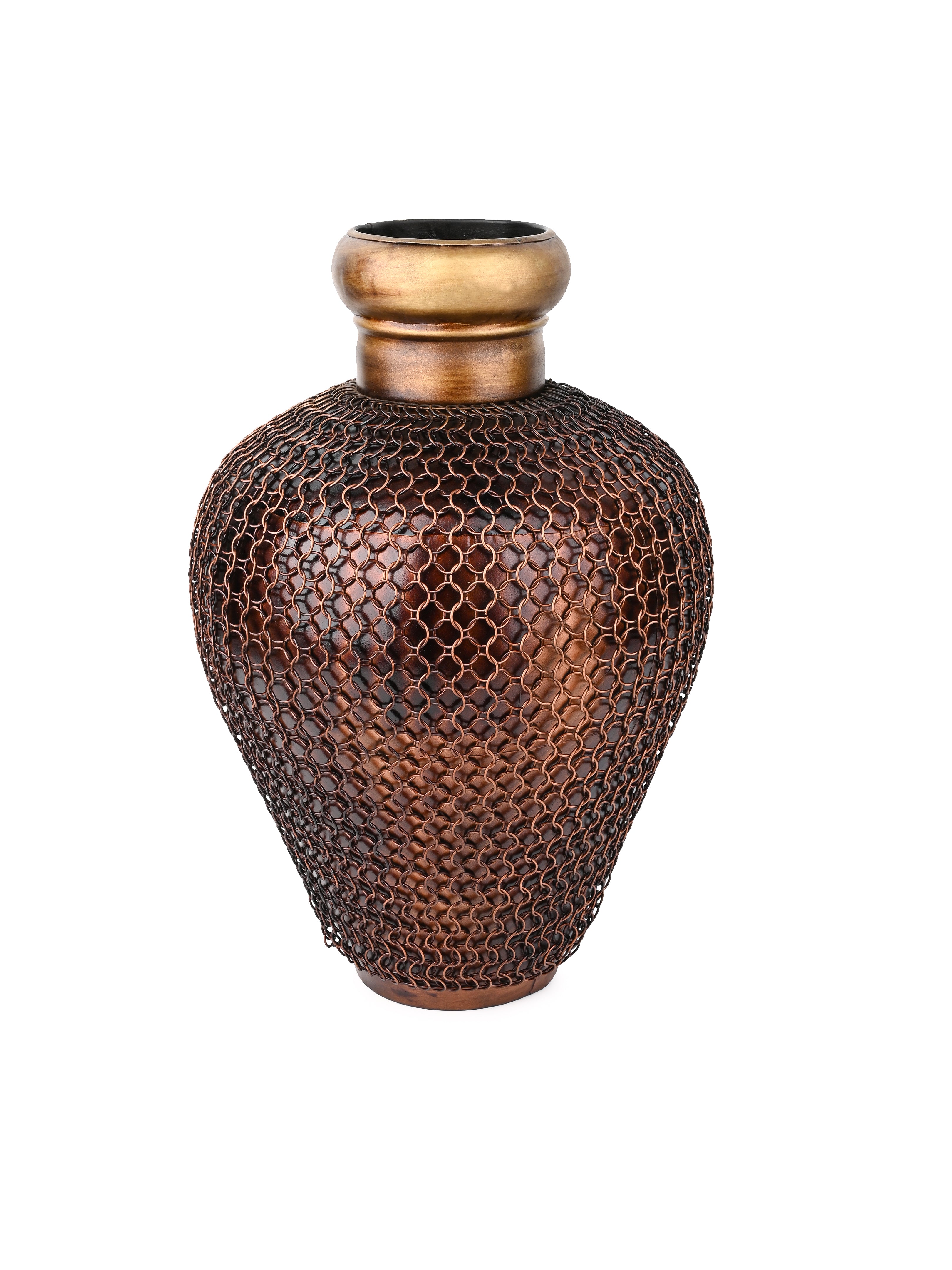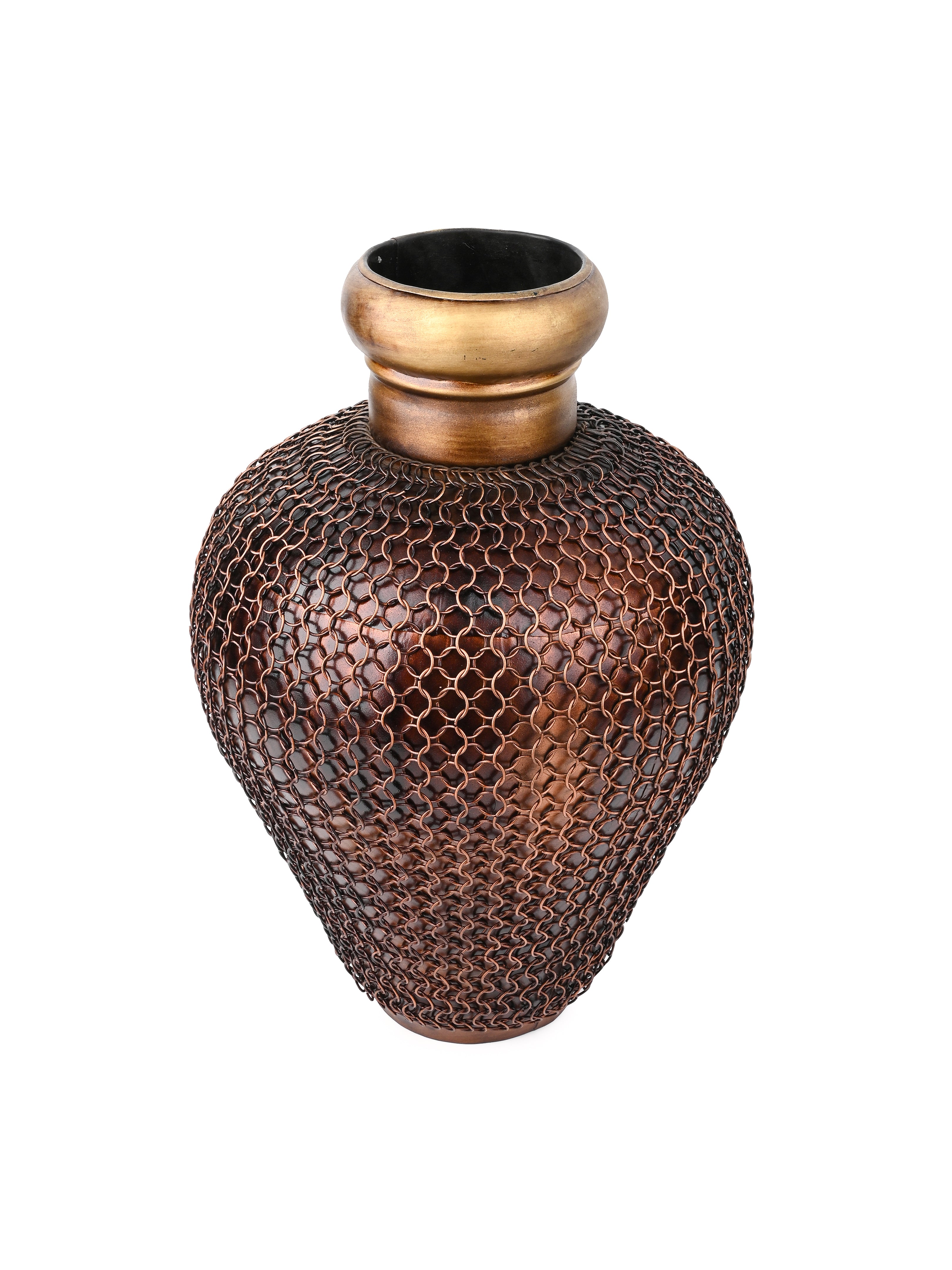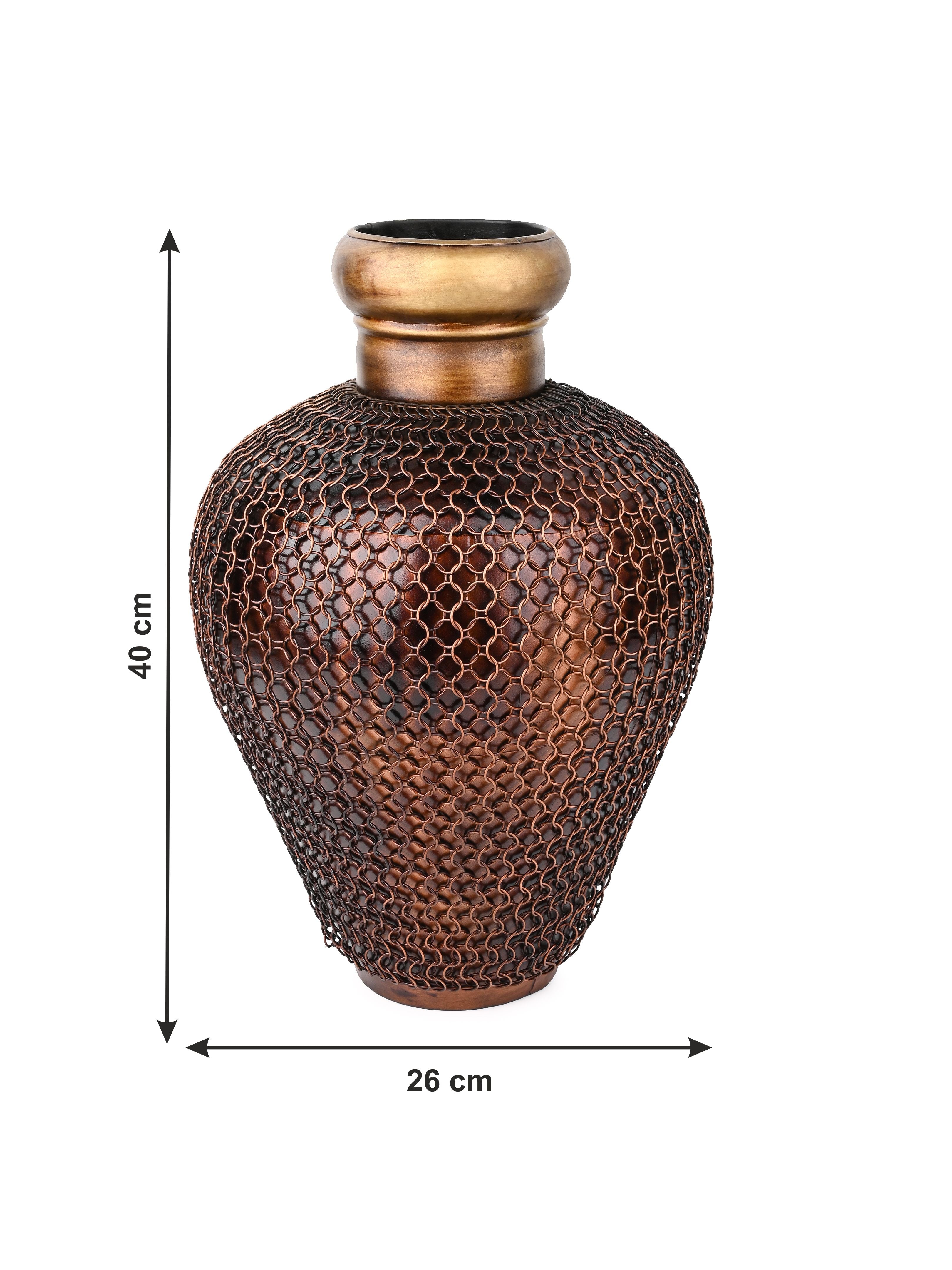 Curate your decor with this stylish dual tone vase made of iron. It features a chain mesh covering on the surface that adds to the visual intrigue. Display this vase on your entry console or coffee table or office cabinet to accentuate your space.