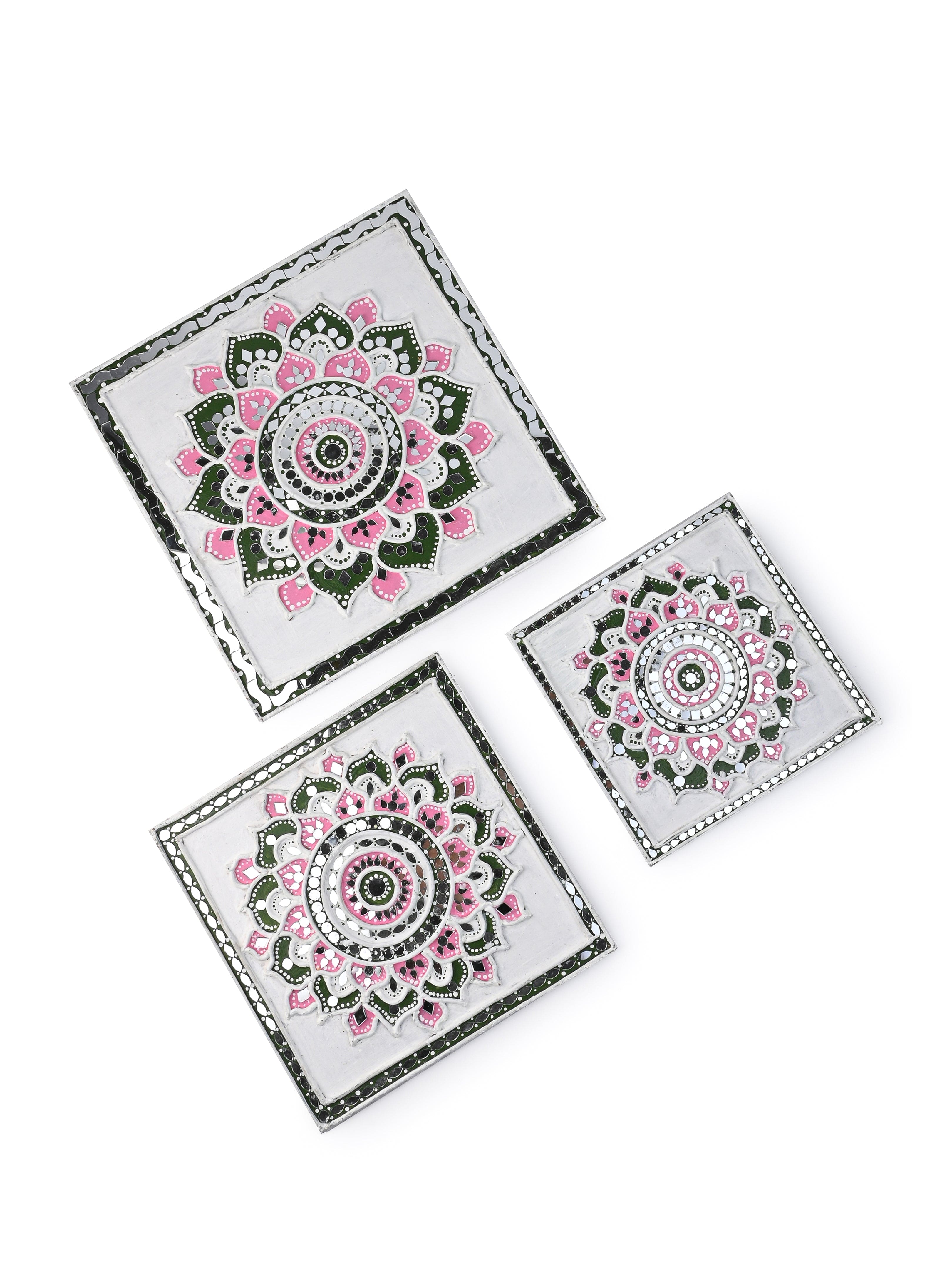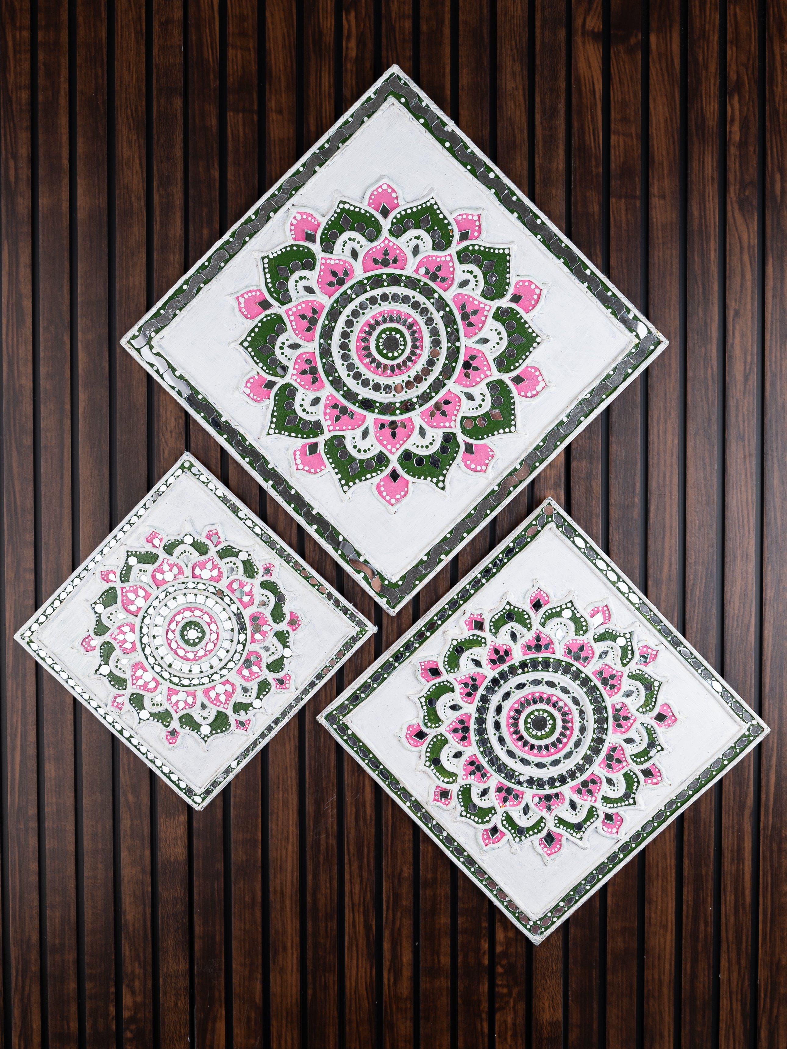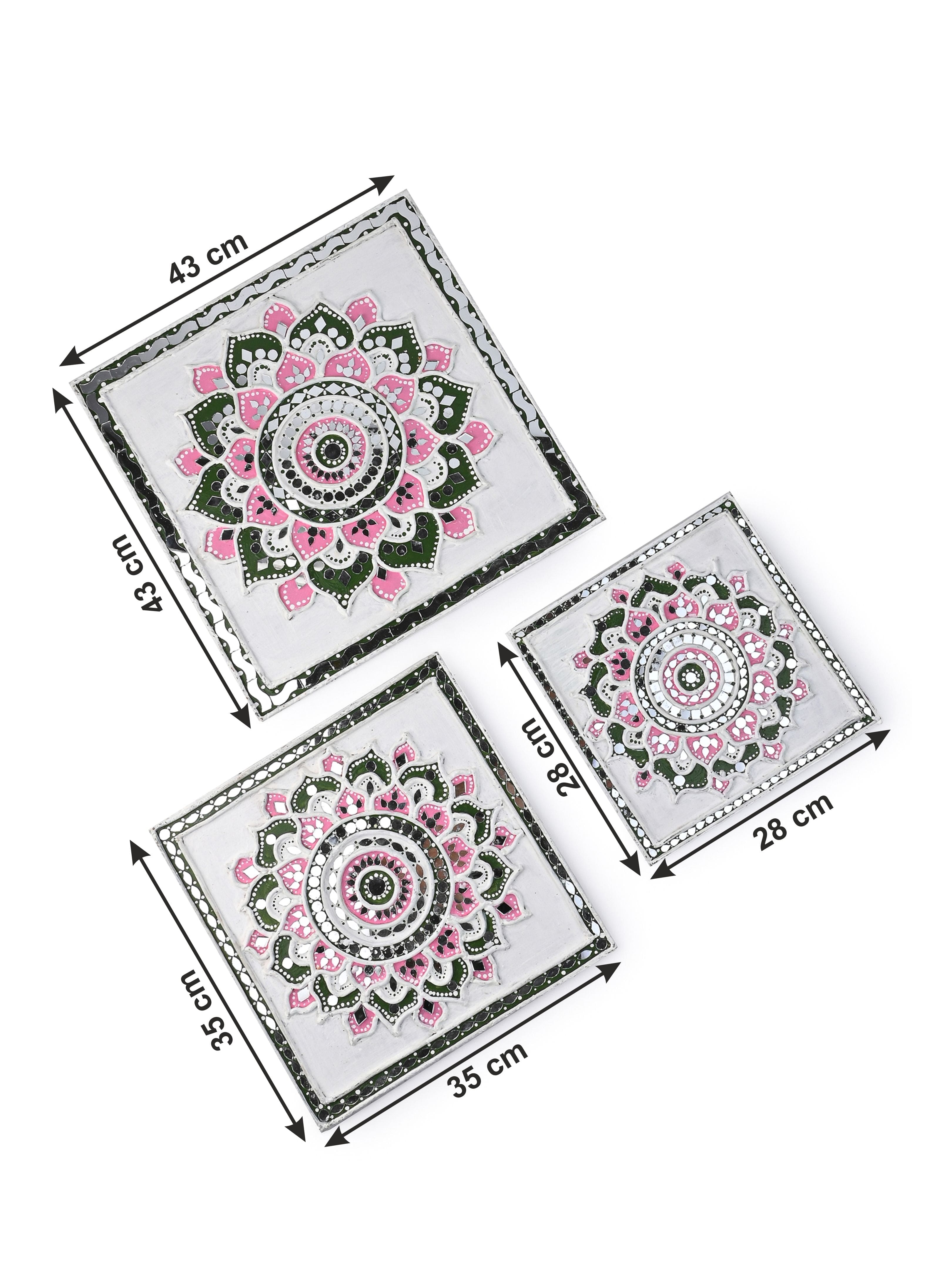 Elevate your decor with this exquisite handmade mirror mosaic Lippan art set of 3 , a masterpiece that effortlessly unites tradition and contemporary style. Created by our skilled artist, this stunning piece showcases intricate mirror mosaics, creating a captivating play of light and color. The mirror mosaic design adds a touch of glamour and reflects light beautifully.